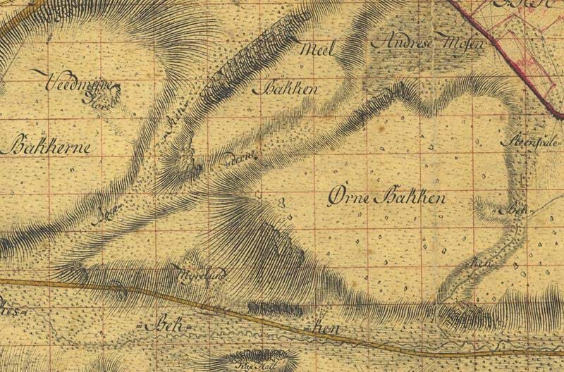 På senere skovkort er der imidlertid sket det beklagelige, at Ørne Bakken er blevet placeret midt på Meel-/Mel-Bakken!