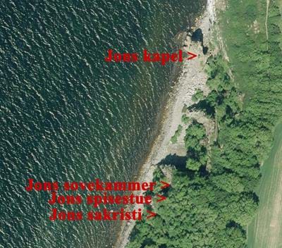 Jons Kapel er i virkeligheden en hule inde i den fritstående klippe Jons Kirke. Den er sammen med andre klippehuler længere sydpå smukke eksempler på det, geologer kalder tørre ovne.