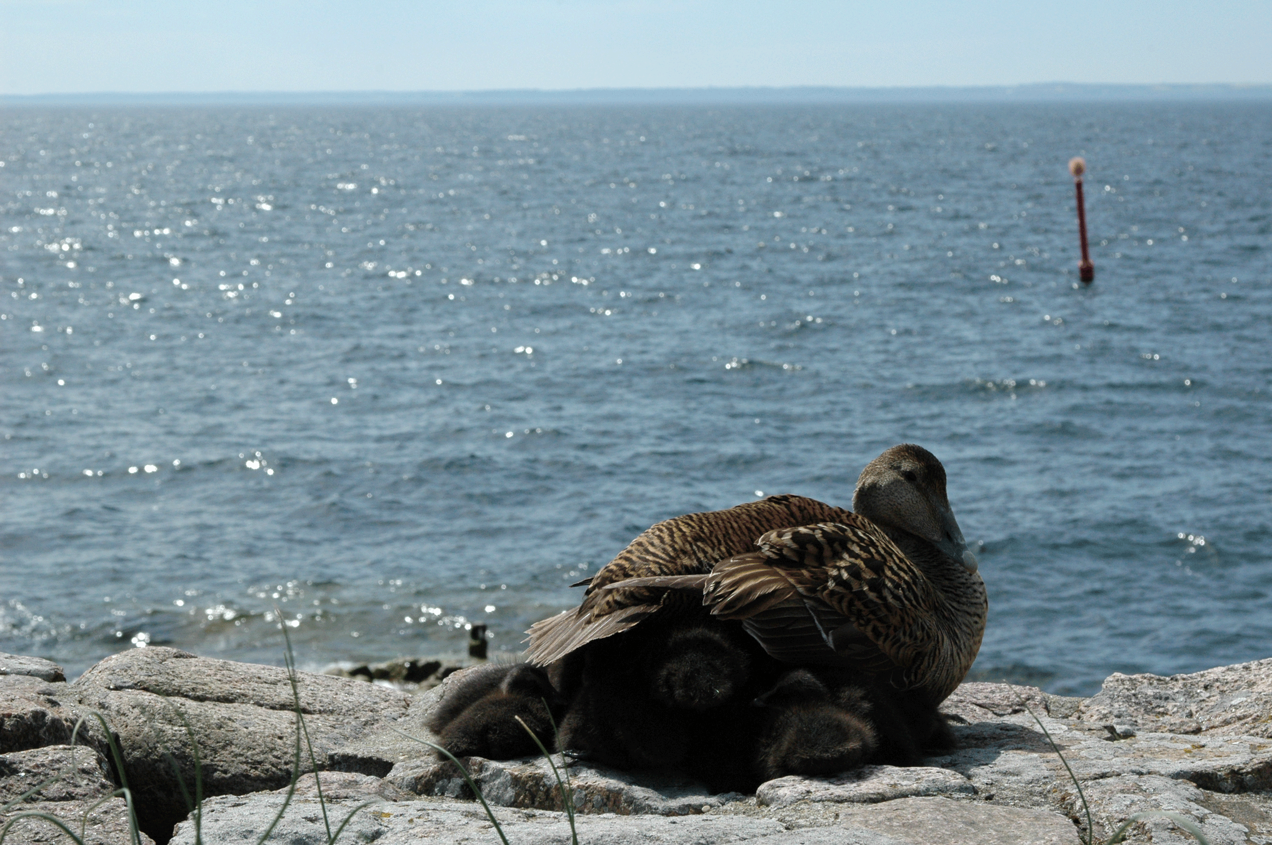 Før 30. maj kunne man se ederfugleællinger med mødre og tanter på havet ud for Saltune, efter 1. juni var der kun nogle få hunner tilbage!
