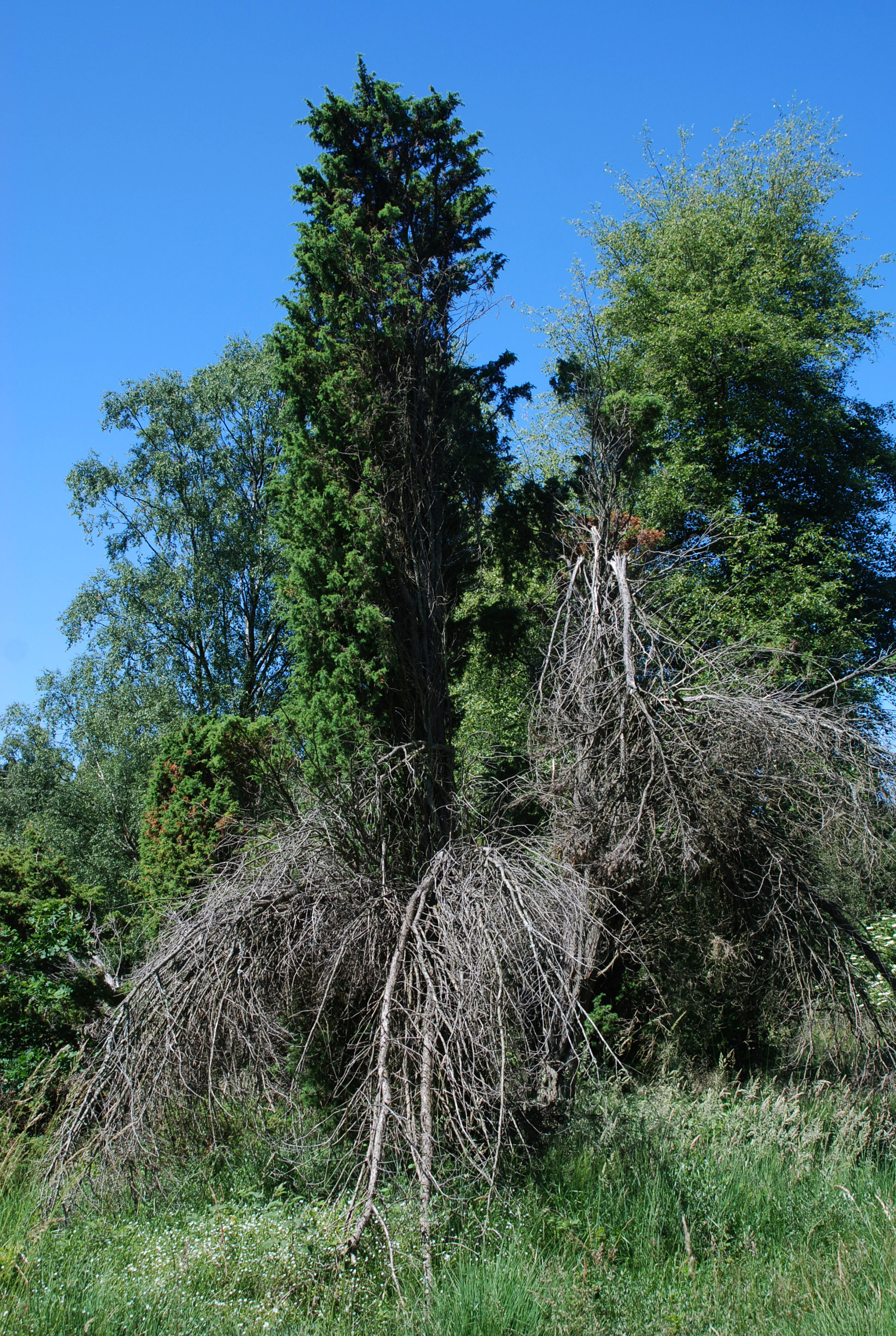 Mange af de store og flotte Enebær ved Majdalen i Paradisbakkerne er knækket på grund af snetrykket, og det er også en stor søjleformet Enebær i Aasen østligst i Almindingen.