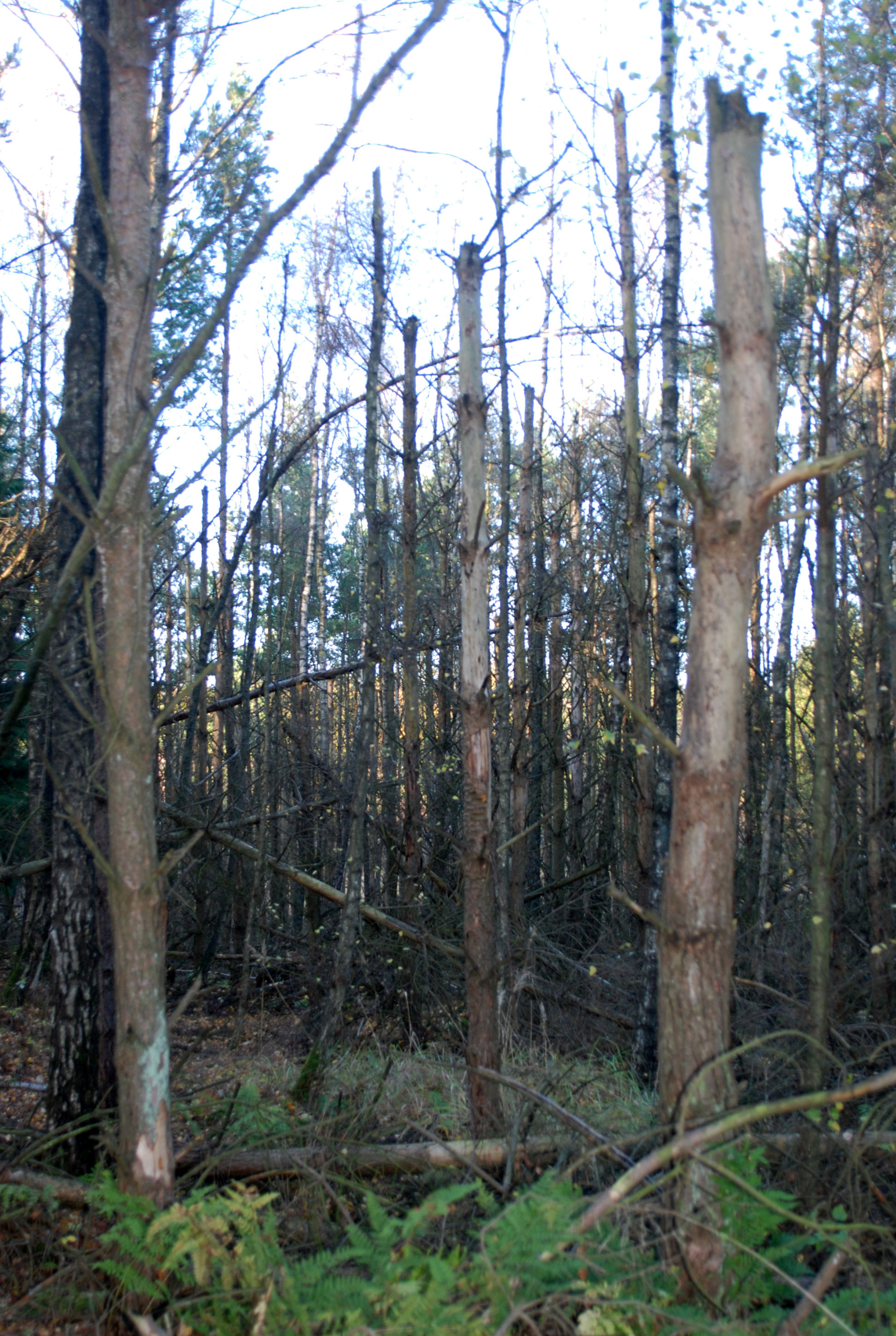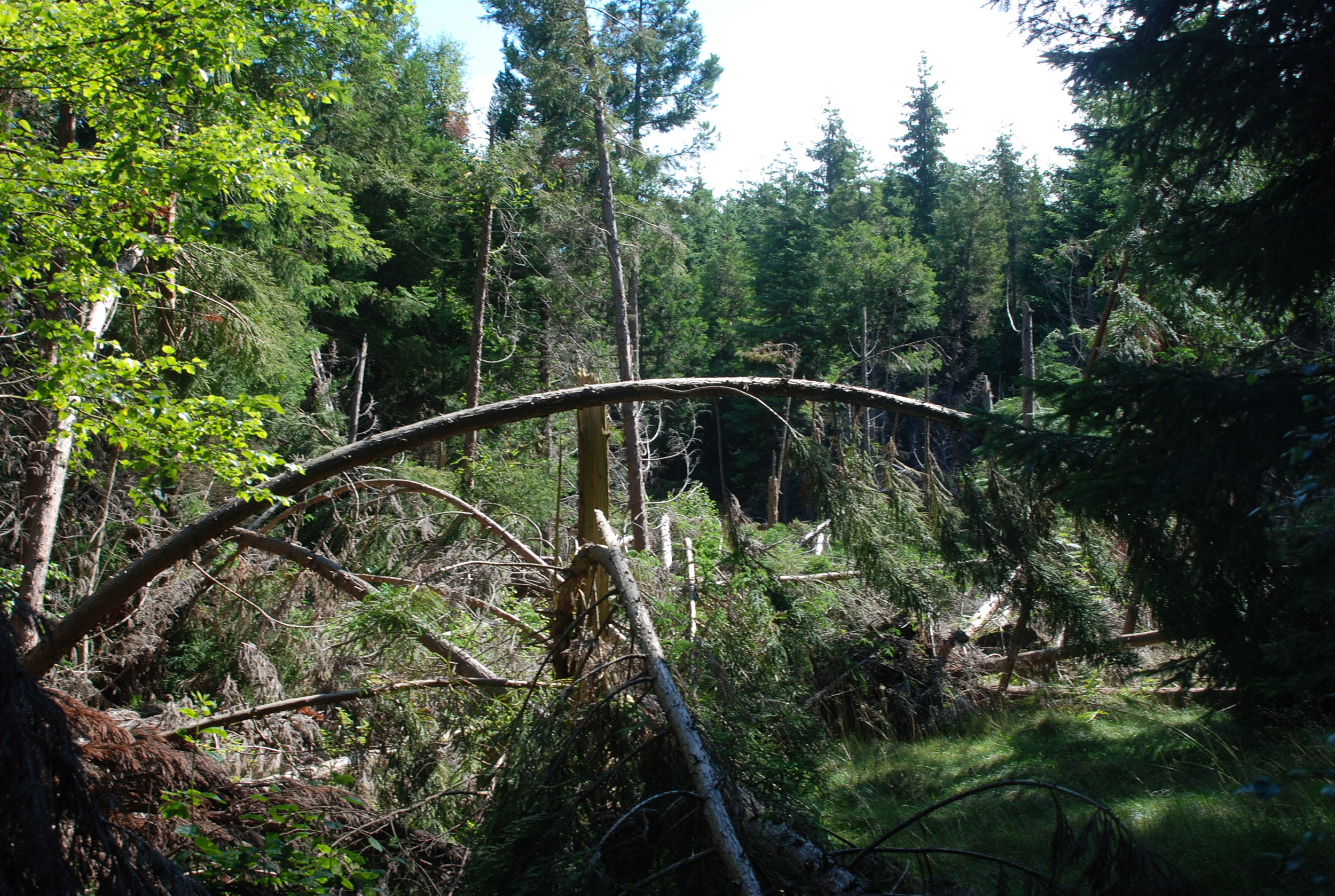 Ældre træer kunne modstå denne byrde, men yngre træer og bøjelige træer gav efter for trykket og lod sig presse mod jorden eller knækkede af under presset.