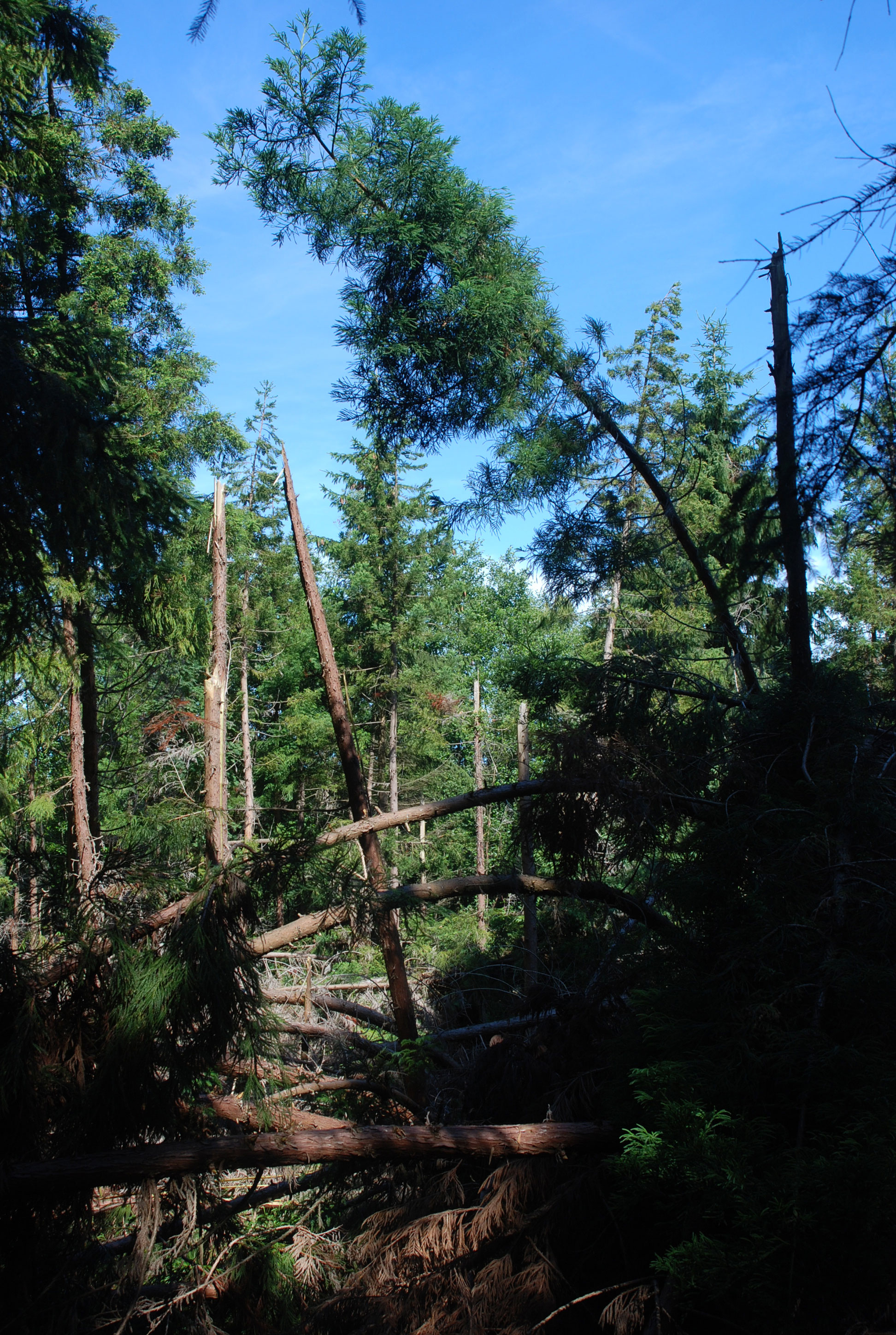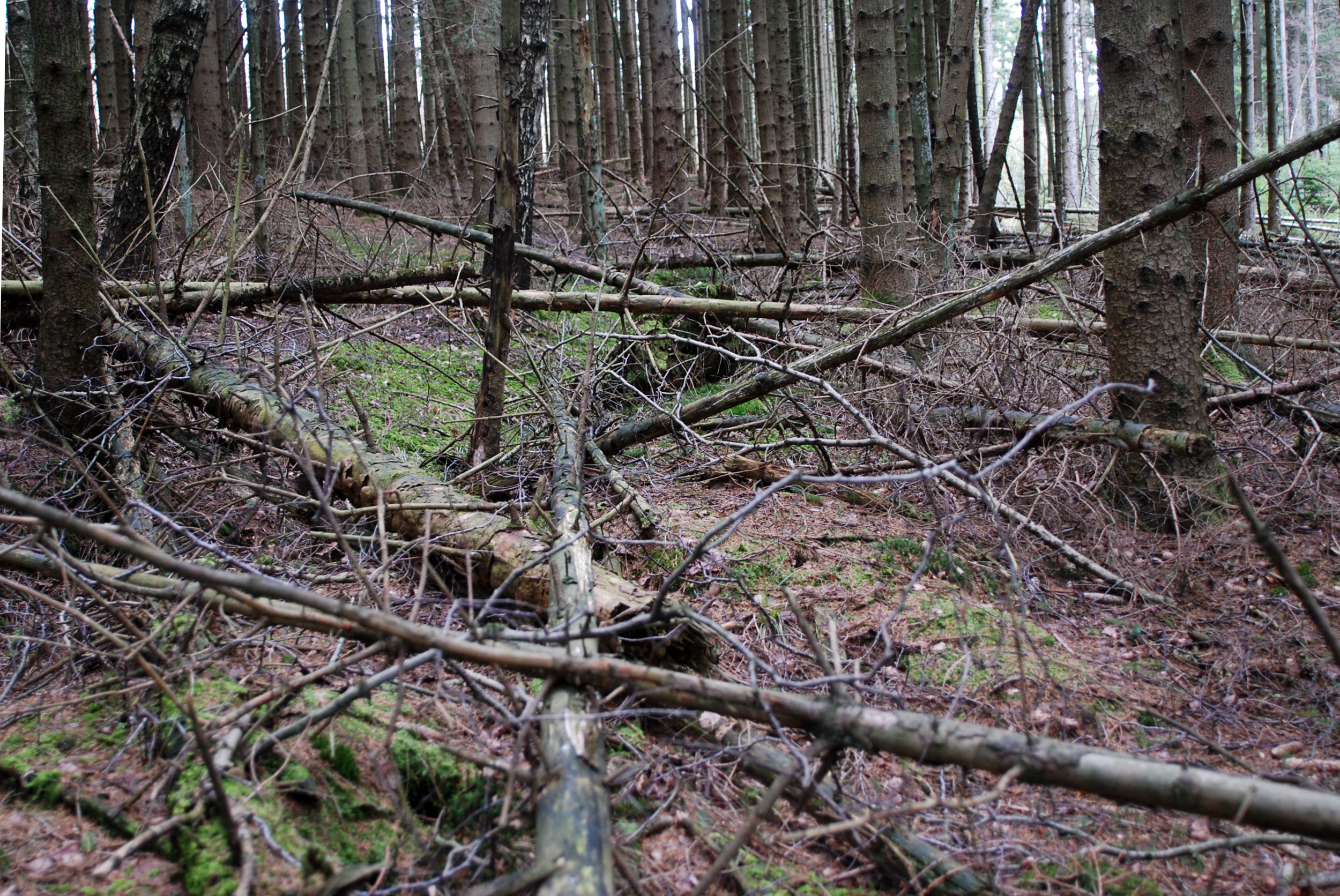 Alt sammen vidnesbyrd efter de voldsomme kræfter, regn, sne og vind kan forårsage på skoven.