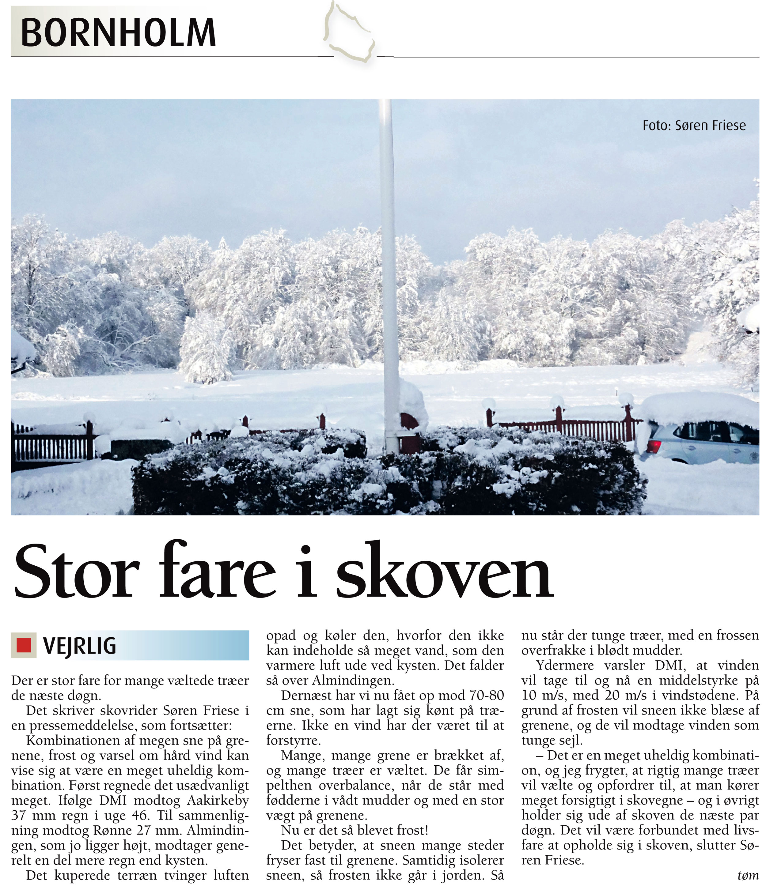 Vejvæsen og Statsskovrider advarede et par dage senere, da det trak op til storm, mod ophold i nåleskove, og folk, der dristede sig ind i skovene kunne berette om en nærmest uhyggelig stemning, hvor træer og grene knagede for til sidst at give op efter presset og lade sig knække og falde til jorden med uhyggelige brag!