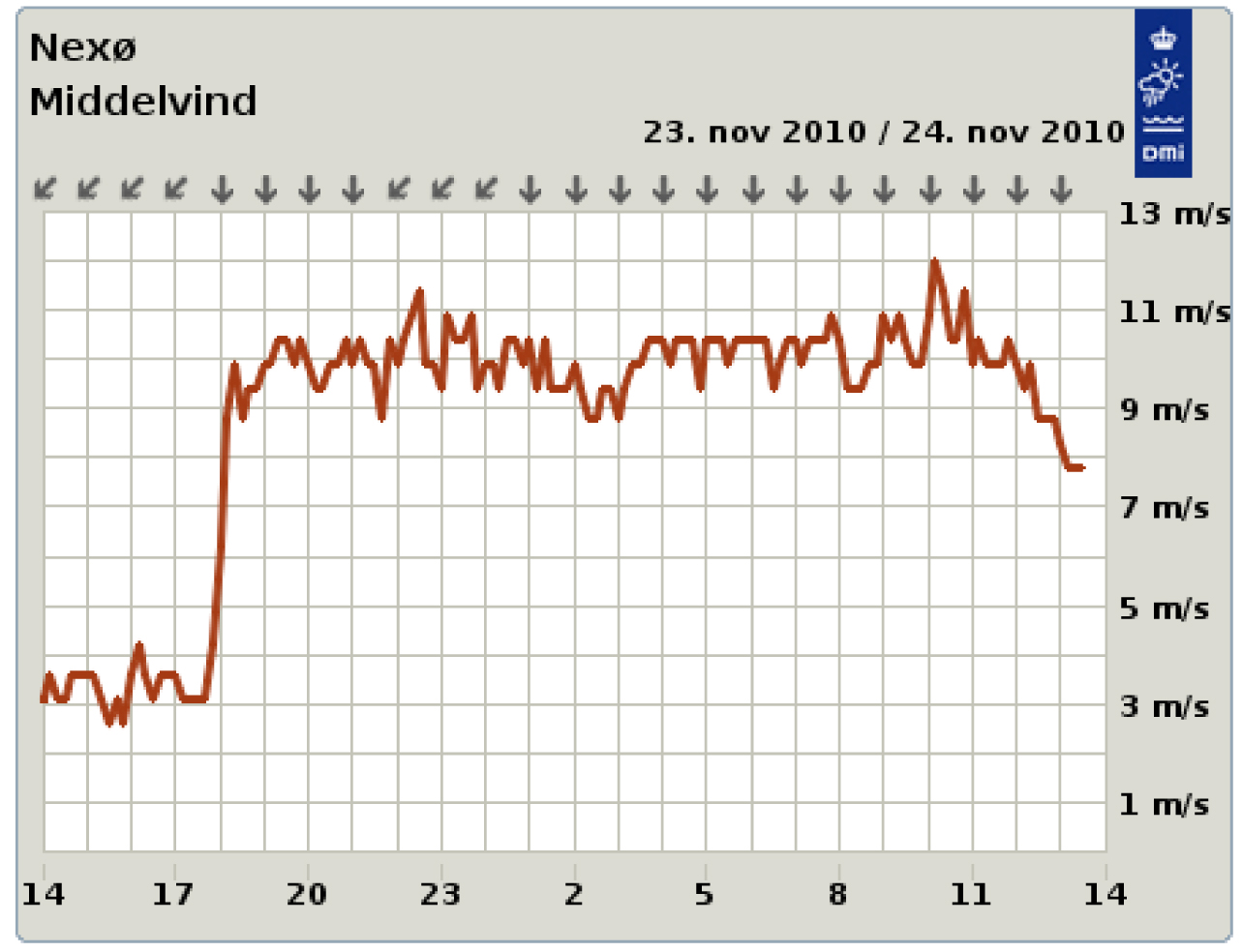 Efter regn, regn og atter regn tirsdag den 23. november med en temperatur på 8 grader og vinden i vest, skete der det, at et lavtryk passerede øen, og vinden skiftede mod nord og temperaturen faldt drastisk.