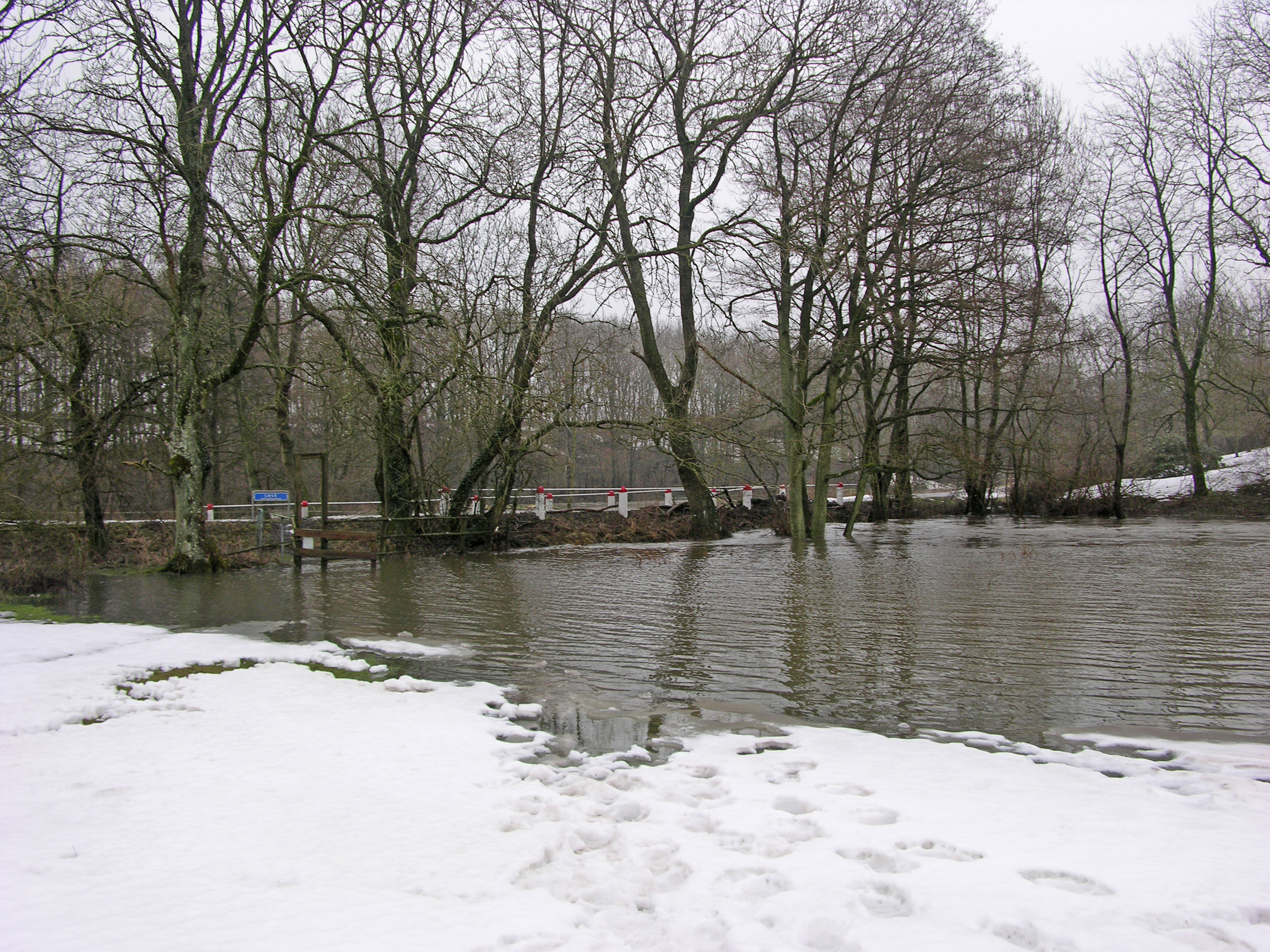 Opstuvning af vand i Vasegårdsengen ved tøbrud - før Vasegårdsbro