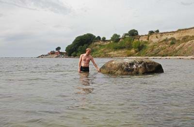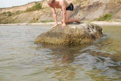 Stenen ligger i dag ikke mere i strandkanten, men 30 meter ude i havet.
