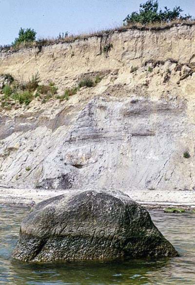 Derover følger lyst, finkornet sand, som er dannet i havet omkring en tidevandszone. Øverst i lagfølgen findes lag med marine aflejringer, der er opbygget af hastigt skiftende ler og sandlag.