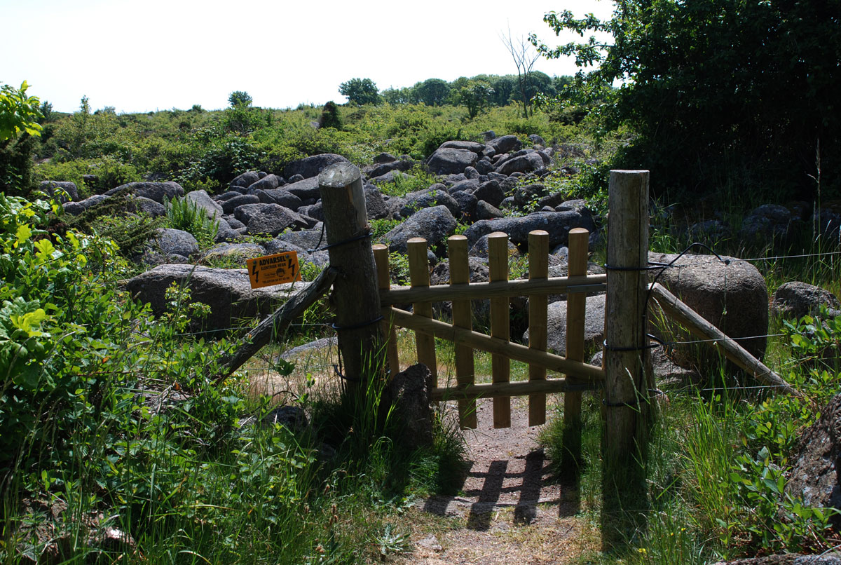 Skansen ligger omgivet af et afgræsset overdrev, en rest efter datidens Kongens Mark.
