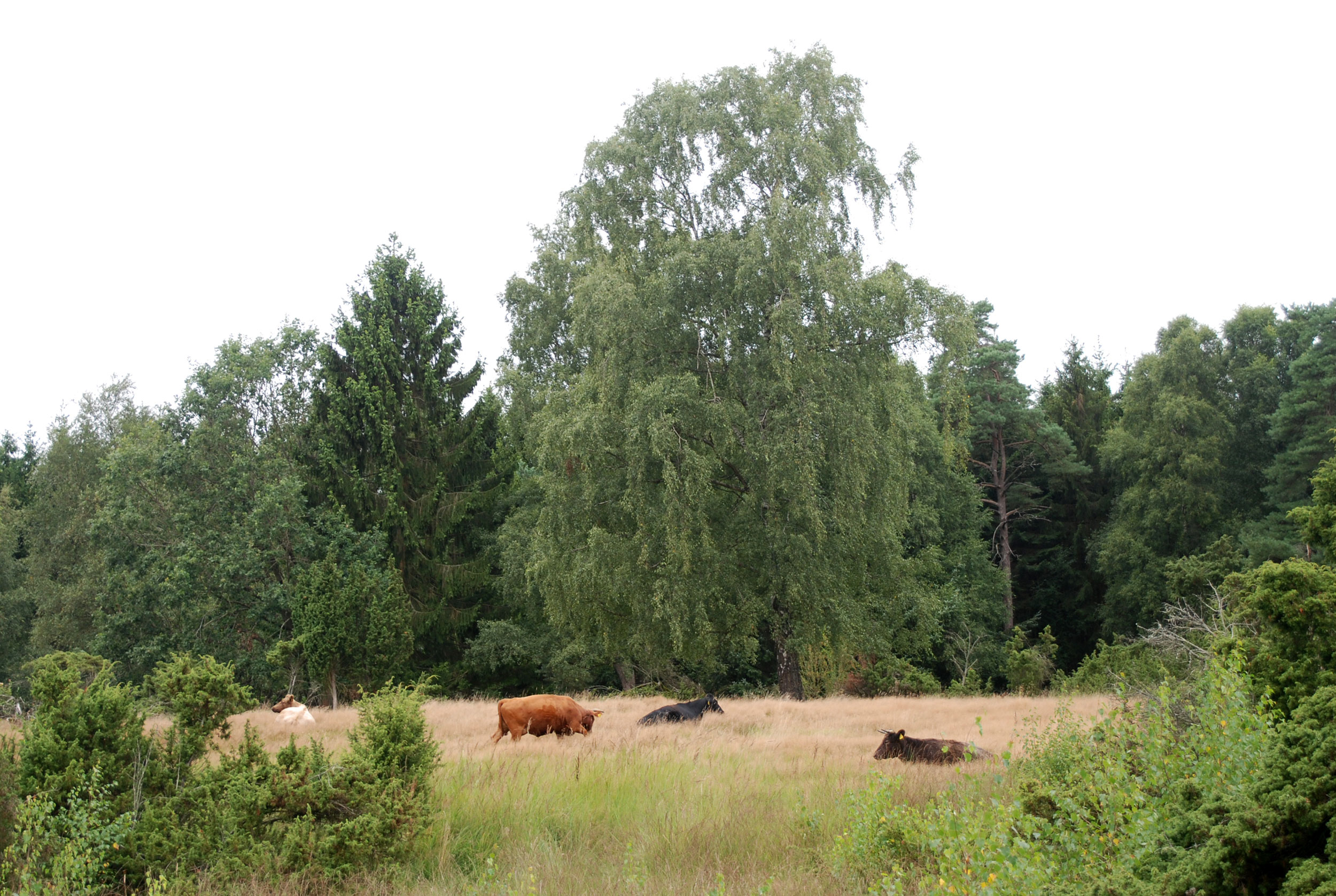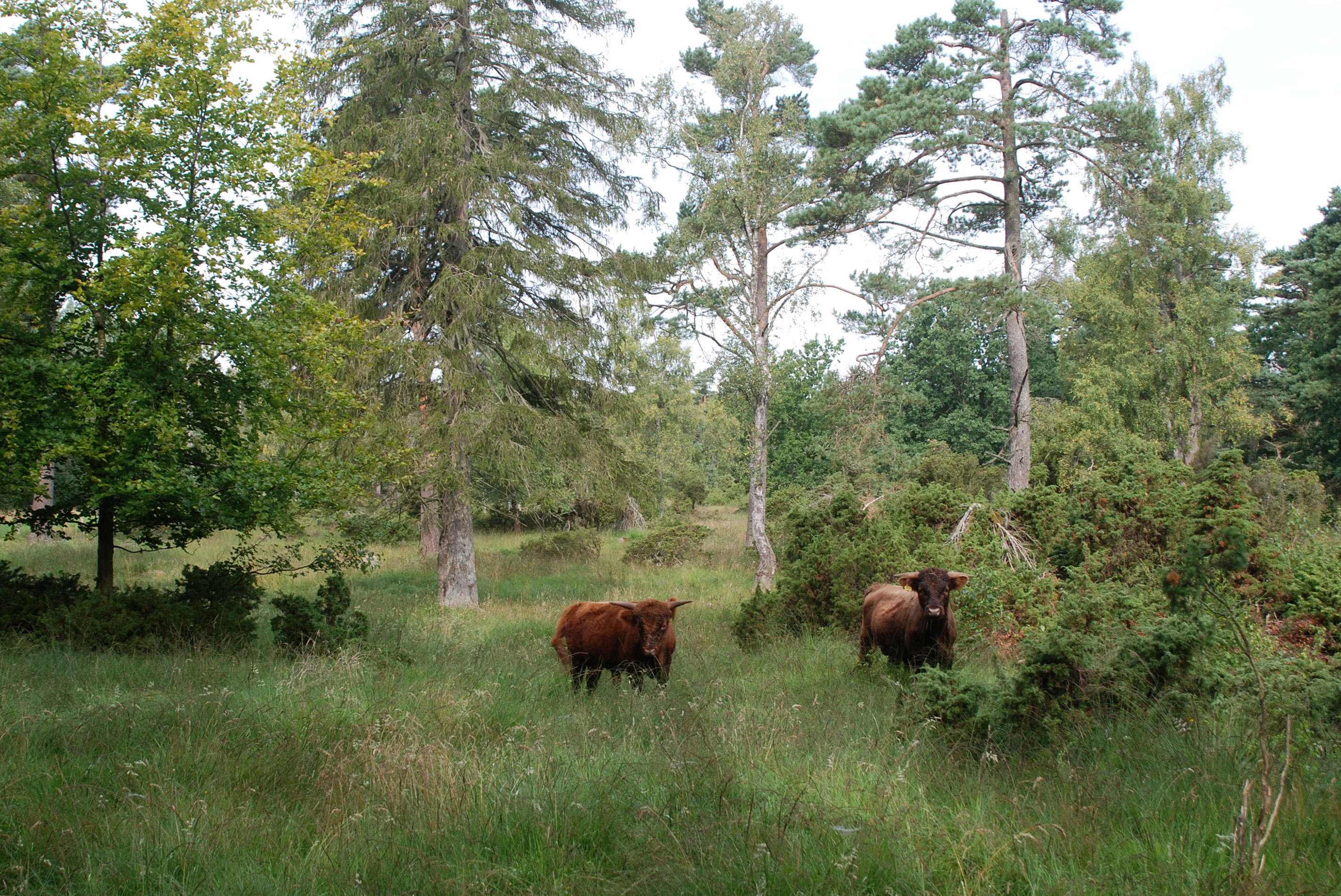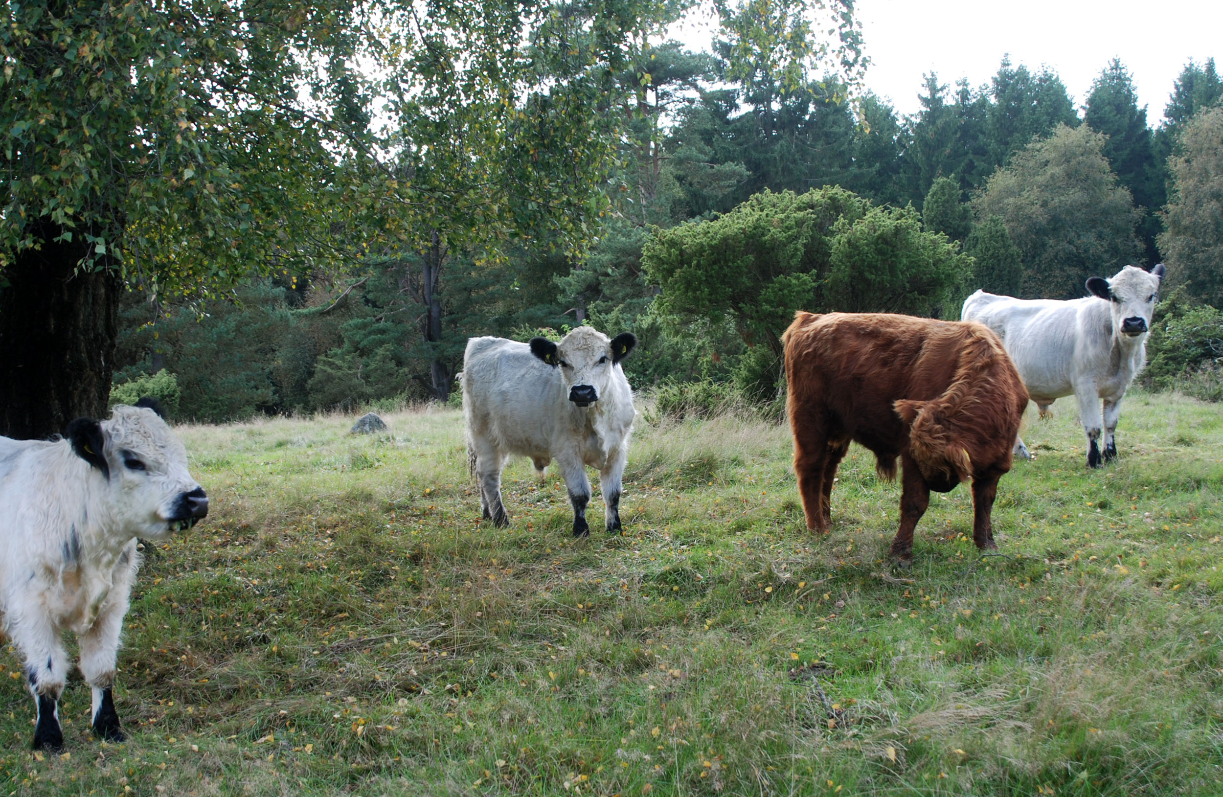 Græssende kreaturer i august 2018 som i middelalderen. Tyrekalvene tilhører Jan Seerup, Hammershuslam