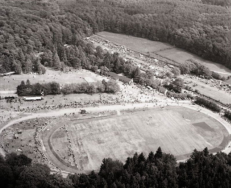 Midt på denne plads i Hareløkkerne blev der midt i 1950'erne af Bornholms amts skytte- og gymnastikforening sammen med Bornholms Landøkonomiske Forening anlagt et større stadion til idræt, gymnastik, håndbold og fodbold.