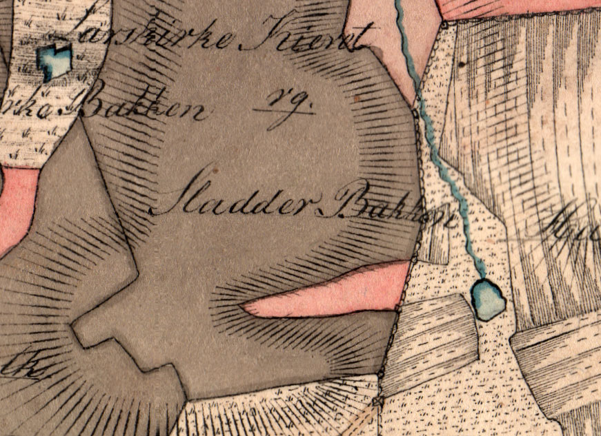 Sladderbakken var i Amtmand Urnes tid i 1788 navngivet som Sladder Bakken. Videnskabernes Selskabs kort fra 1805 har den noteret som Sladerbakken, og på A C Rømers kort er den noteret som Sladder Bakken. Om dette kort iøvrigt, tryk her og læs mere.