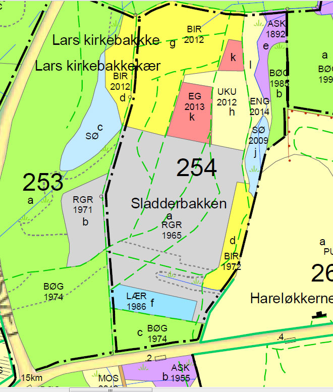 Allerede i 1825-26 var den beplantet med Rødgran, ligesom den har været frem til 2017, da den dengang 52 år gamle bevoksning blev fældet. Efterfølgende er der plantet Rødbøg.
