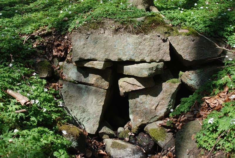 Underføringen blev sat op med flade sprængte stykker granit, og i dag huser dette sted en større bestand af den for Bornholm så karakteristiske, og dog særprægede Grotte Edderkop, Meta menardi.