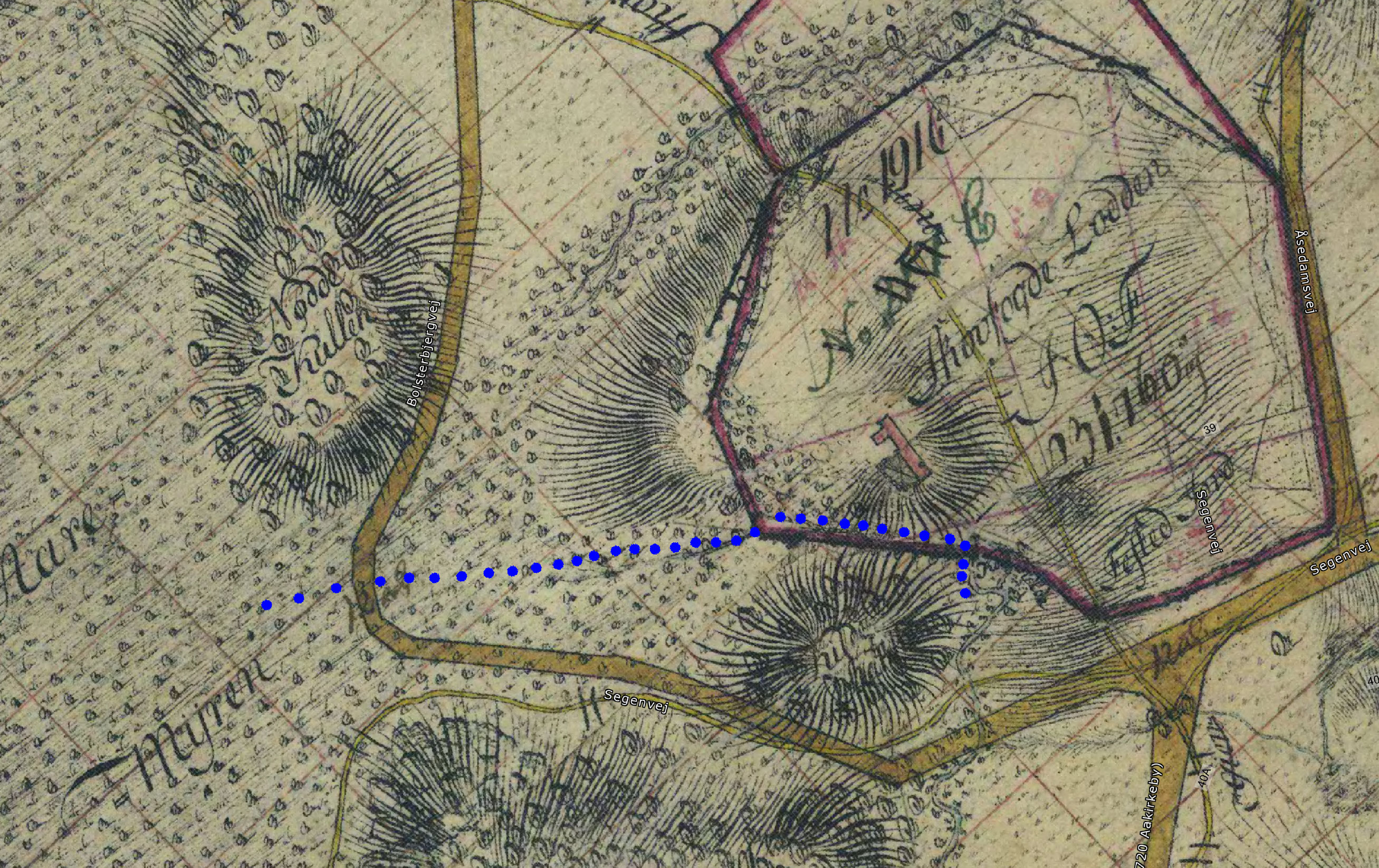 Og så skal man bemærke den dybe "kanal", der fører fra Aaremyre og nord om Kildebakken for at støde til bækken fra kilden.