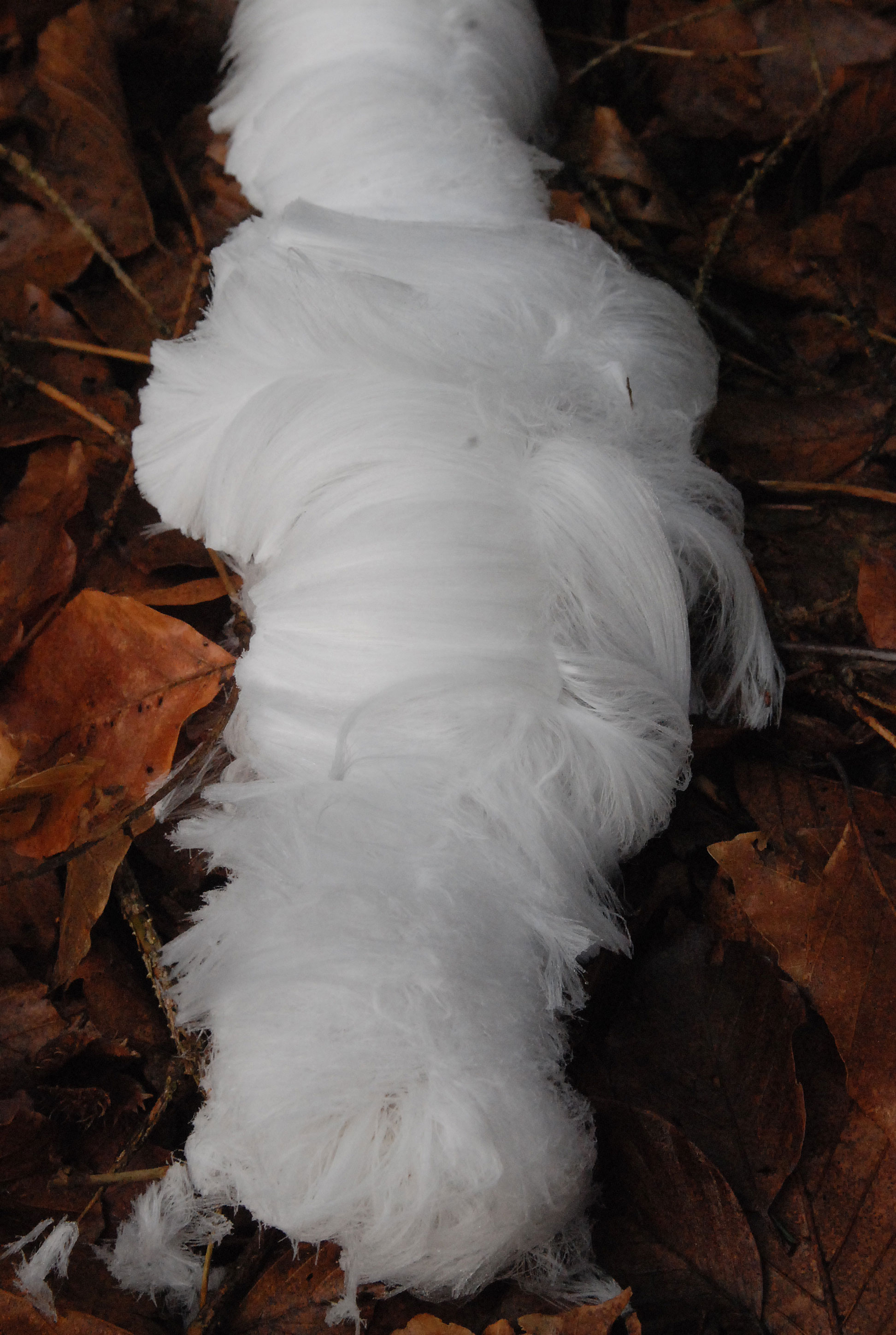 Kommer man i den tidlige vinter på en dag, hvor en front med regn er blevet afløst af opklaring med stor udstråling til verdensrummet og temperaturfald til under frysepunktet, kan man i det lave område langs vandløbet notere sig "håris" eller som det populært kaldes "nisseskæg" eller "ispels" på grene i skovbunden.
