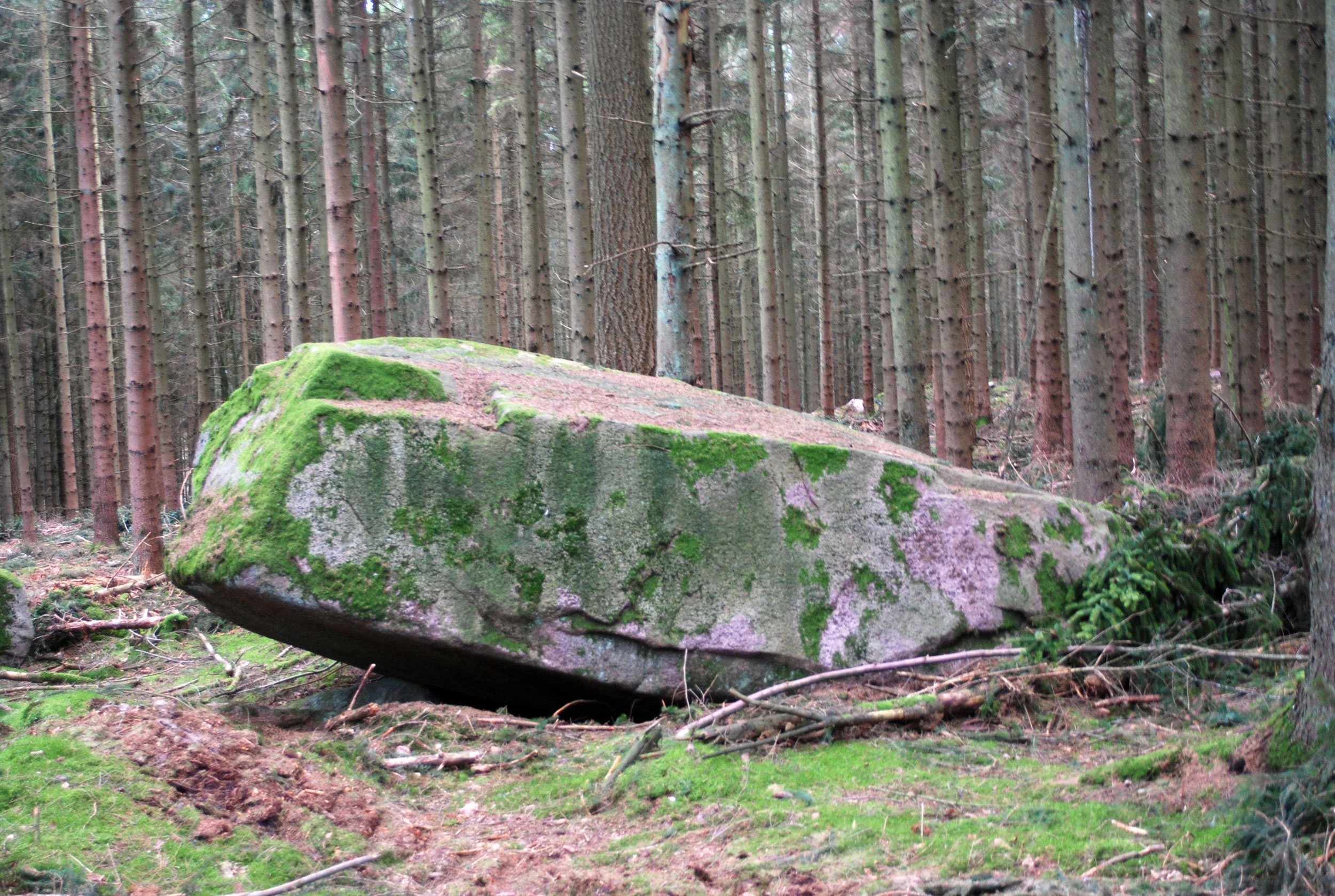 1) Små 100 meter vest for Elisabeths klippe, i dag godt skjult i en rødgransbevoksning ligger Elisabethsklippe-stenen.