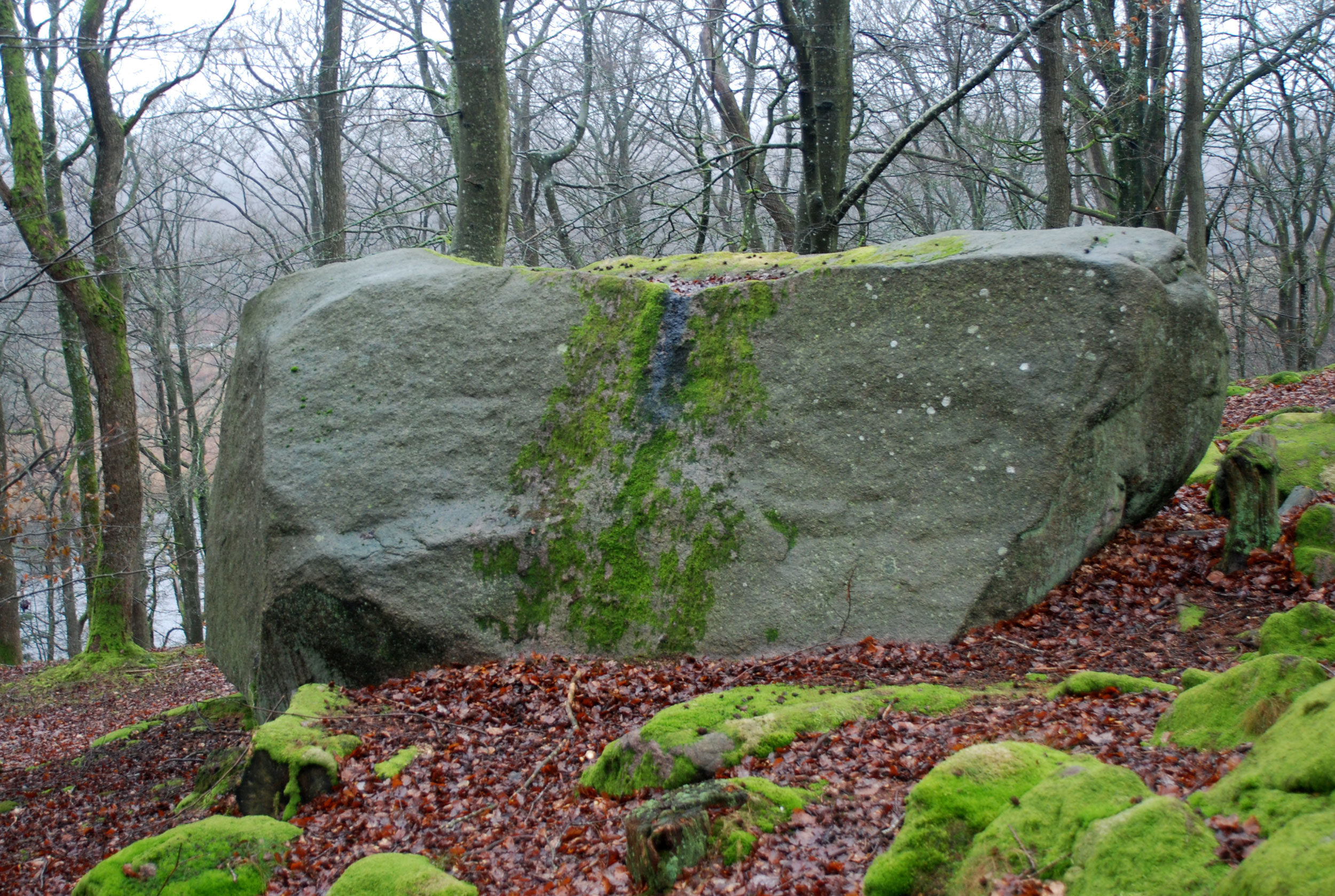 2) På skråningen 100 meter nordvest for Sofiehøj markerer Sophiehøj1-stenen sig fint i den åbne bøgeskov.