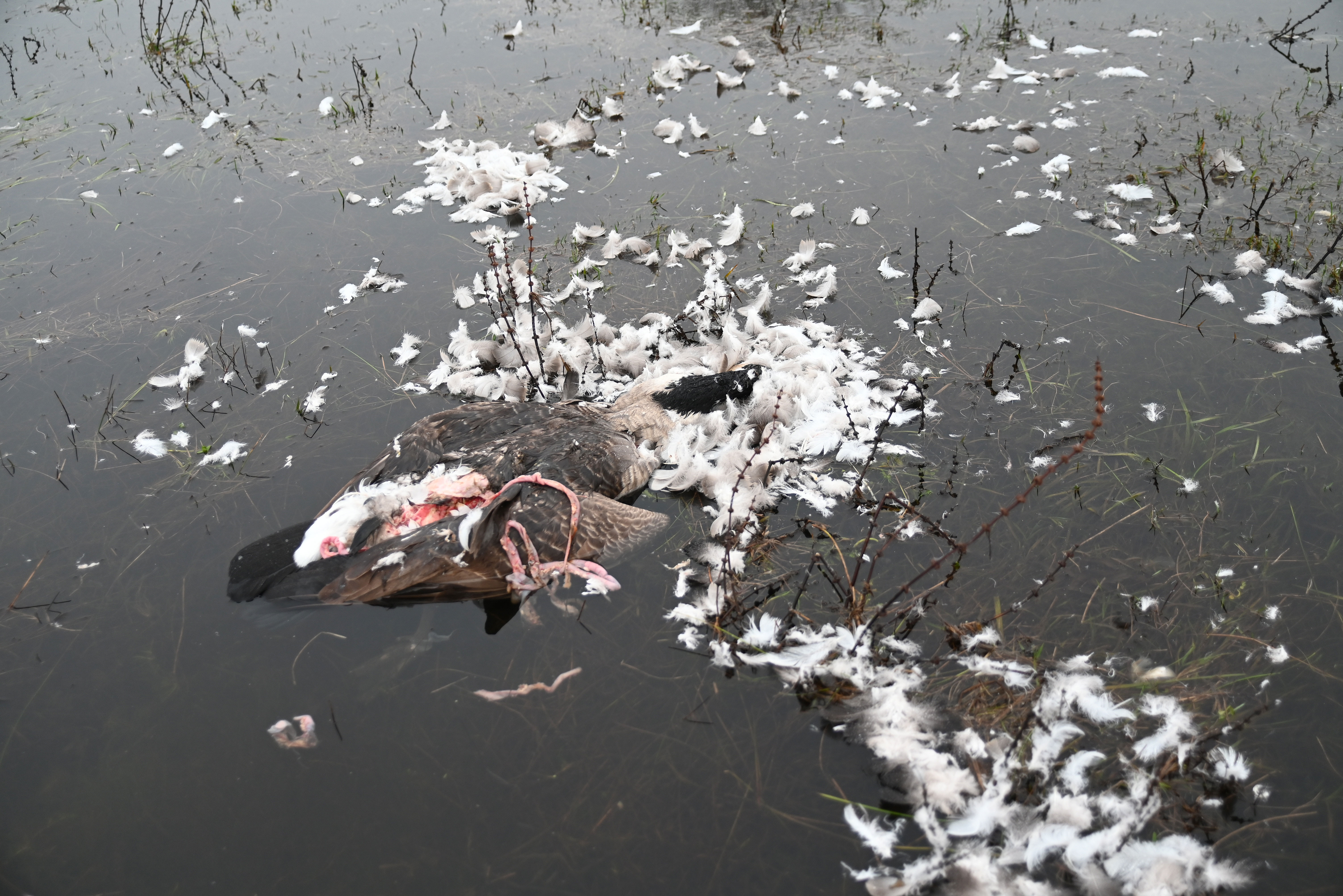 Større mængder gæs døde i Udkæret i første halvdel af december 2025.