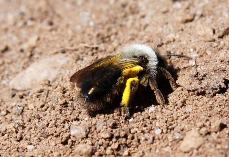 Det er en koloni af Hvidbrystet jordbi. Tryk her og læs nærmere om denne spændende bi - samt dens noget særprægede samliv med et snyltende insekt.