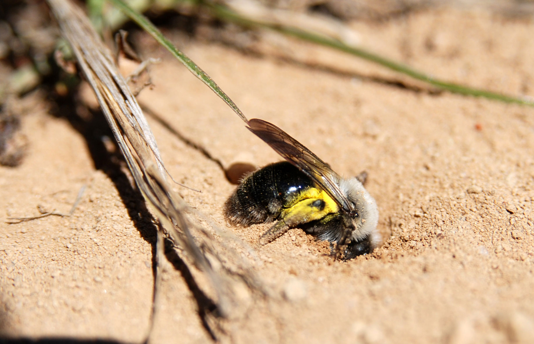 Midt i denne arkæologiske guldgrube af fund fra Jægerstenalderens Maglemosekultur finder man et større antal huller i jorden - og på varme forårsdage adskillige bier, der søger til disse huller.
