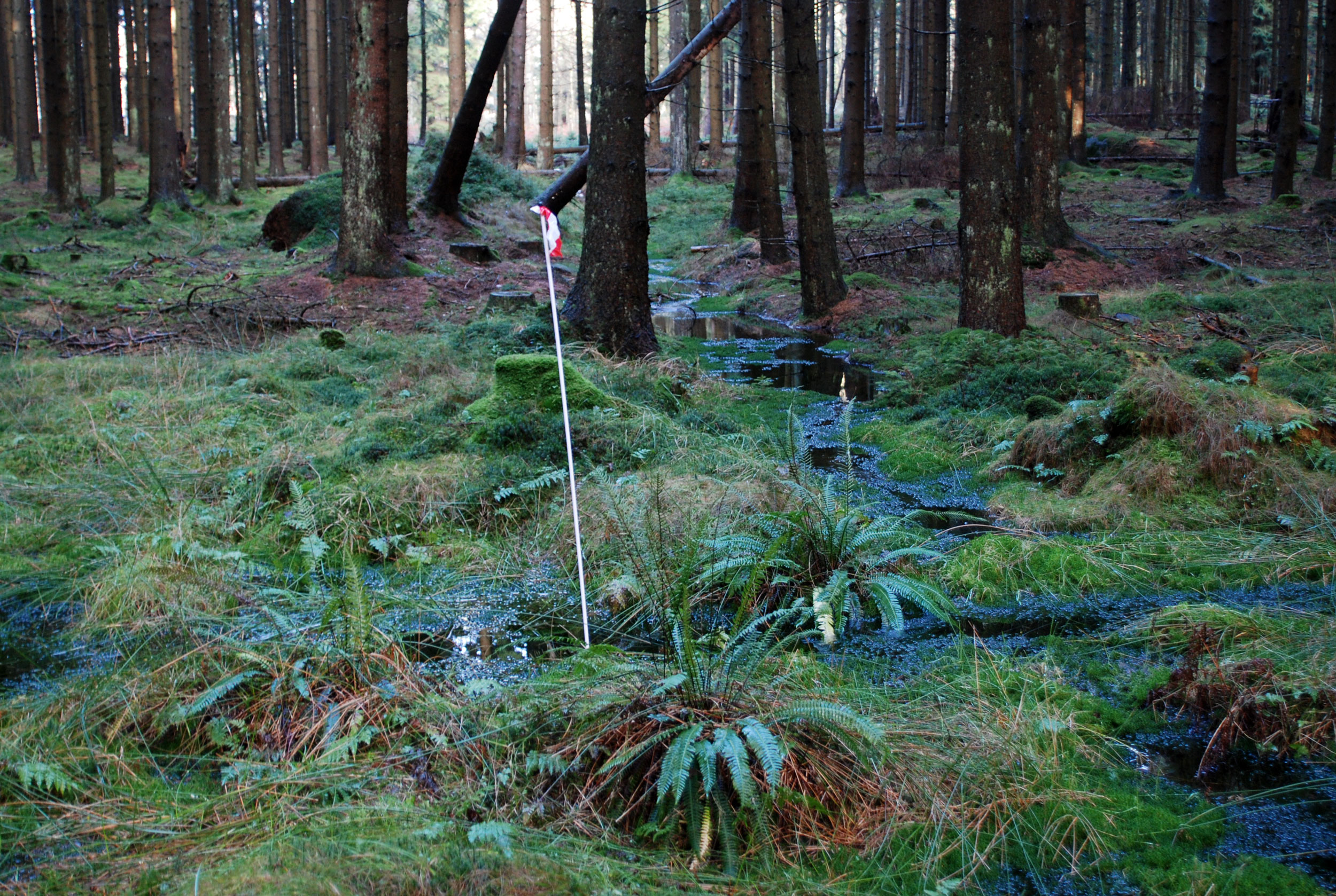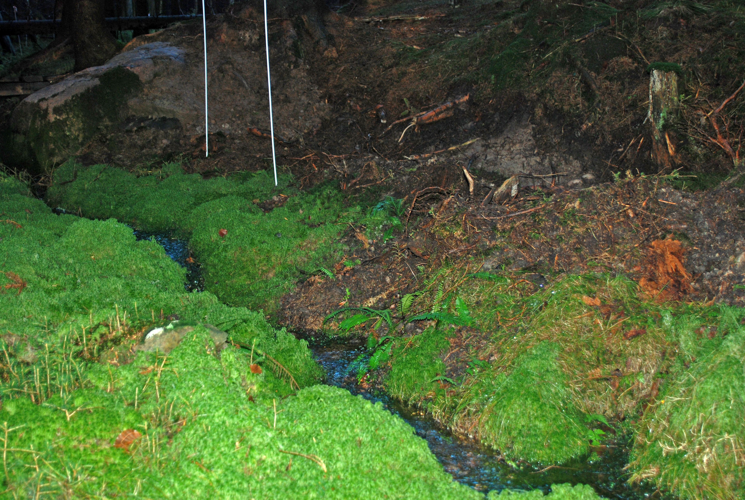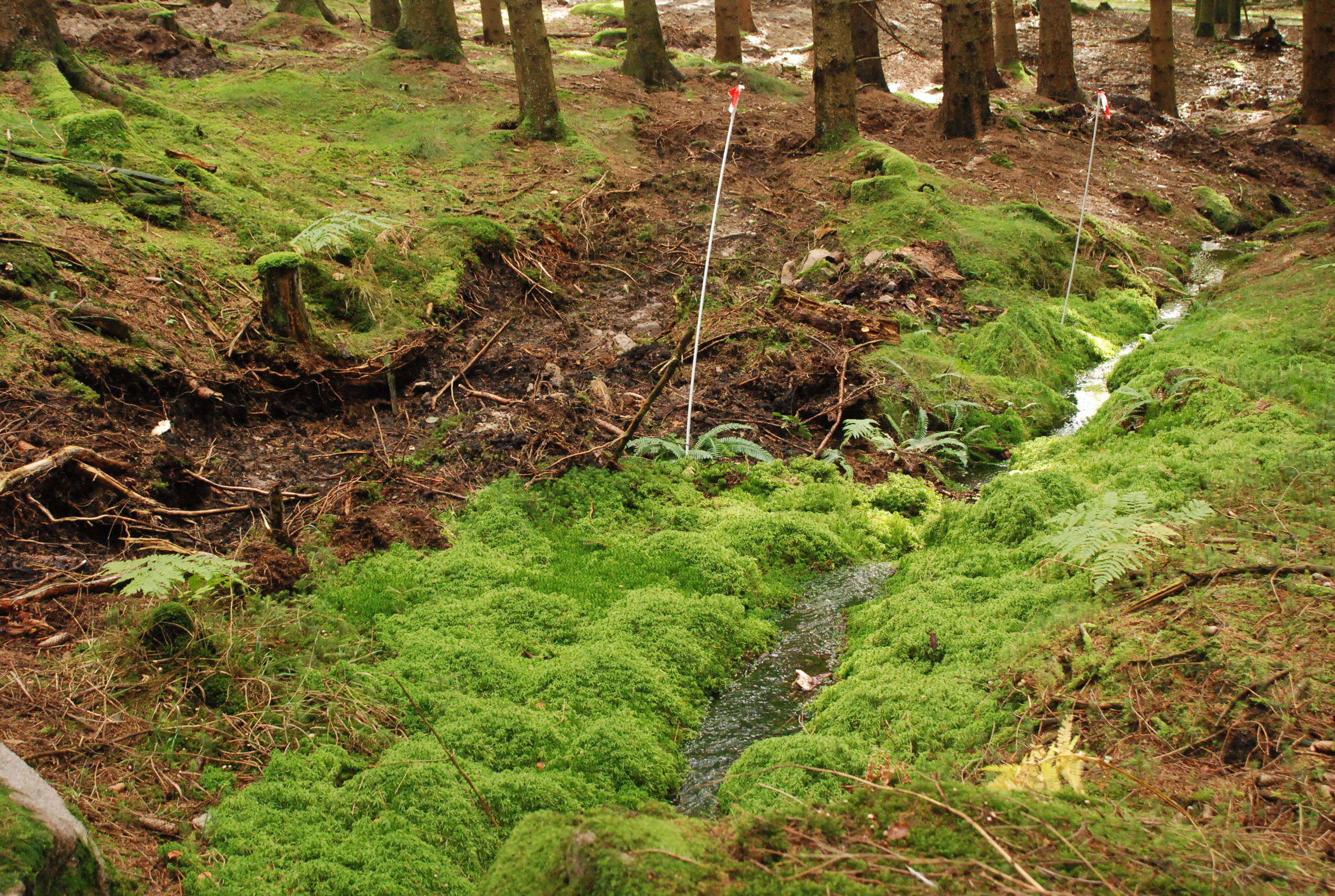 Sphagnum og Kambregner er i gang med at etablere sig langs Gedebæk i 2014 - før udgravning til mountainbikespor