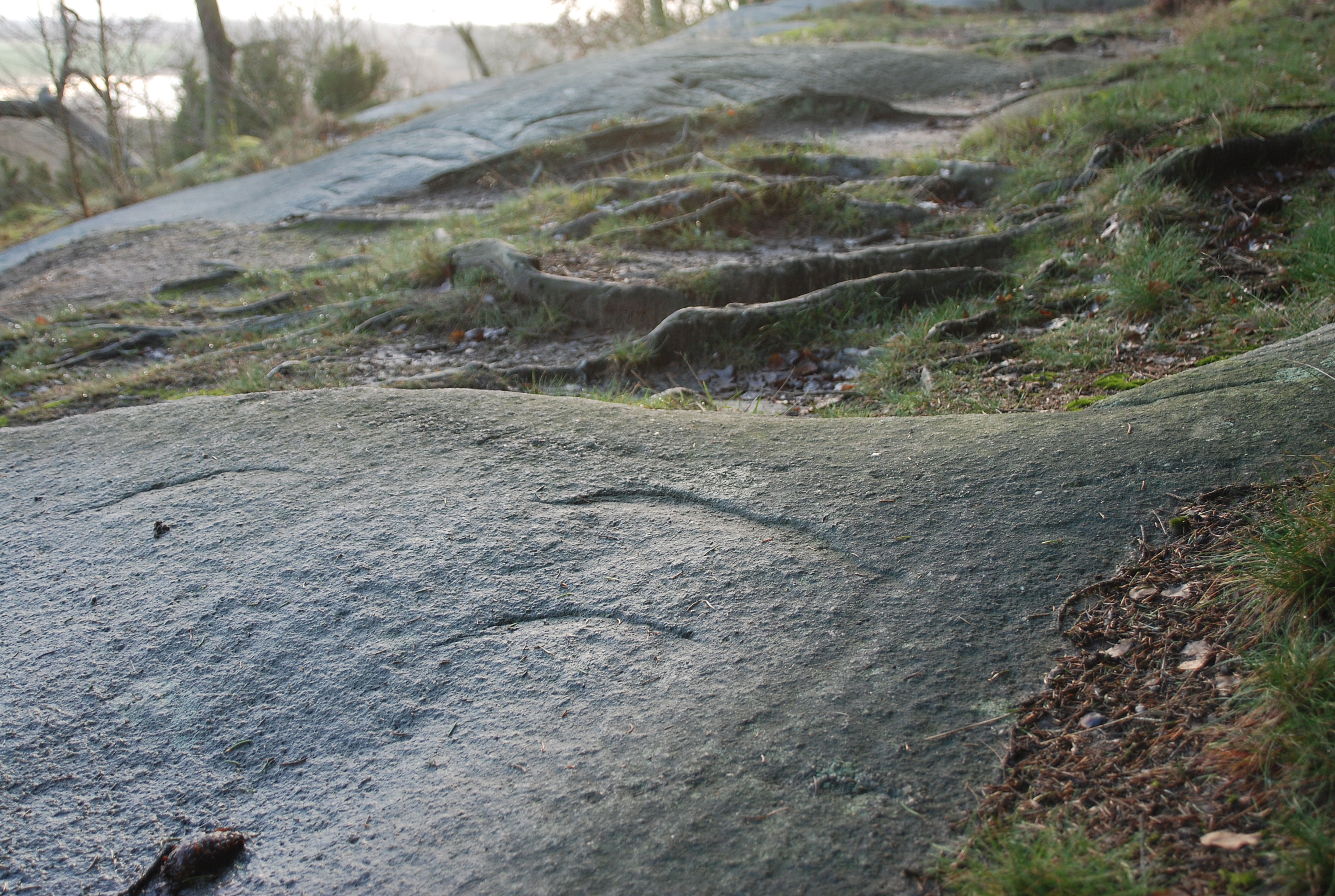 Vandet har transporteret jord, grus og mindre sten med på sin vej ned ad bakken de seneste 12.000 år, og de større sten er blevet liggende frit oven på grundfjeldet.