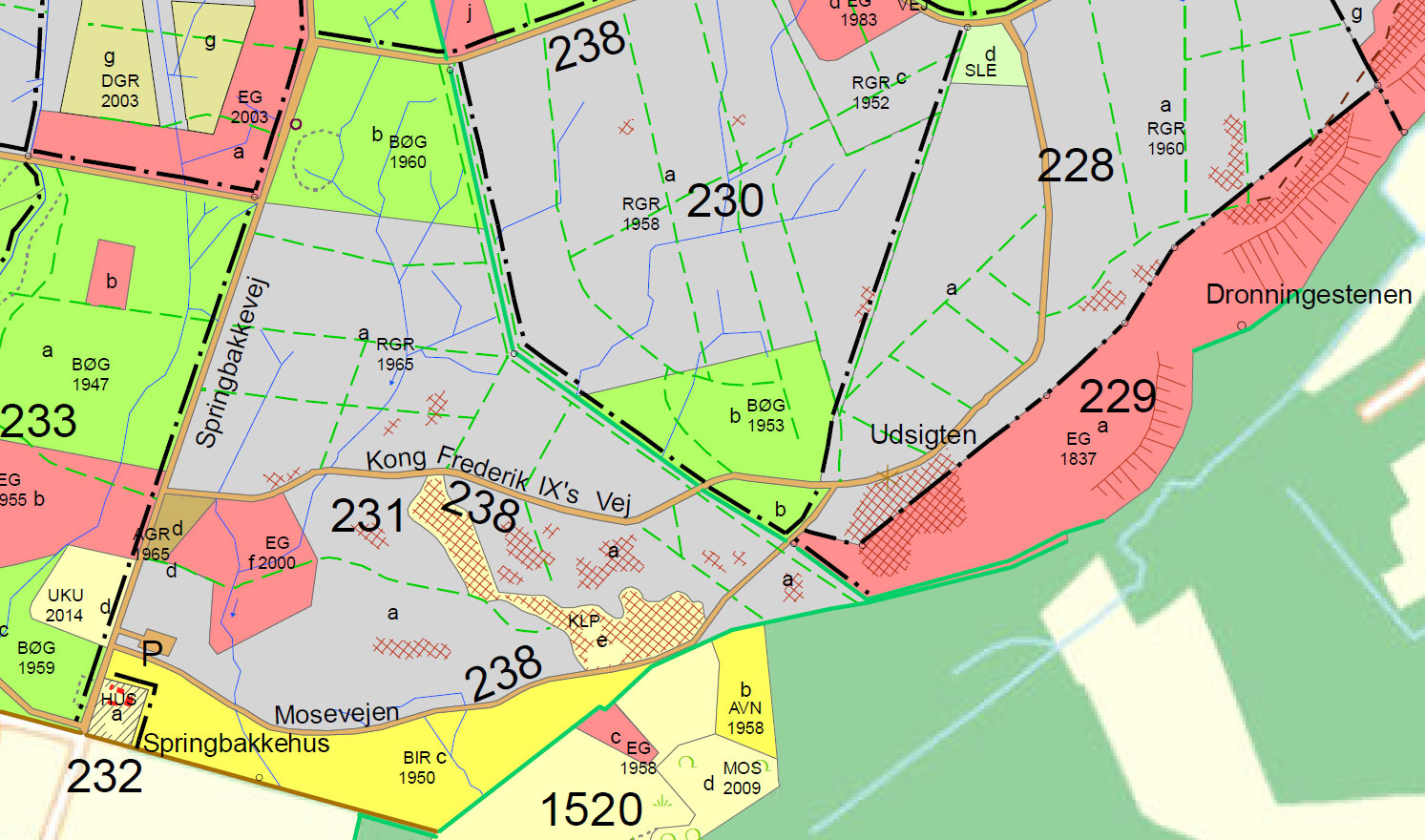 Mosevejen, Kong Frederik IX's Vej og Udsigten på nyere skovkort