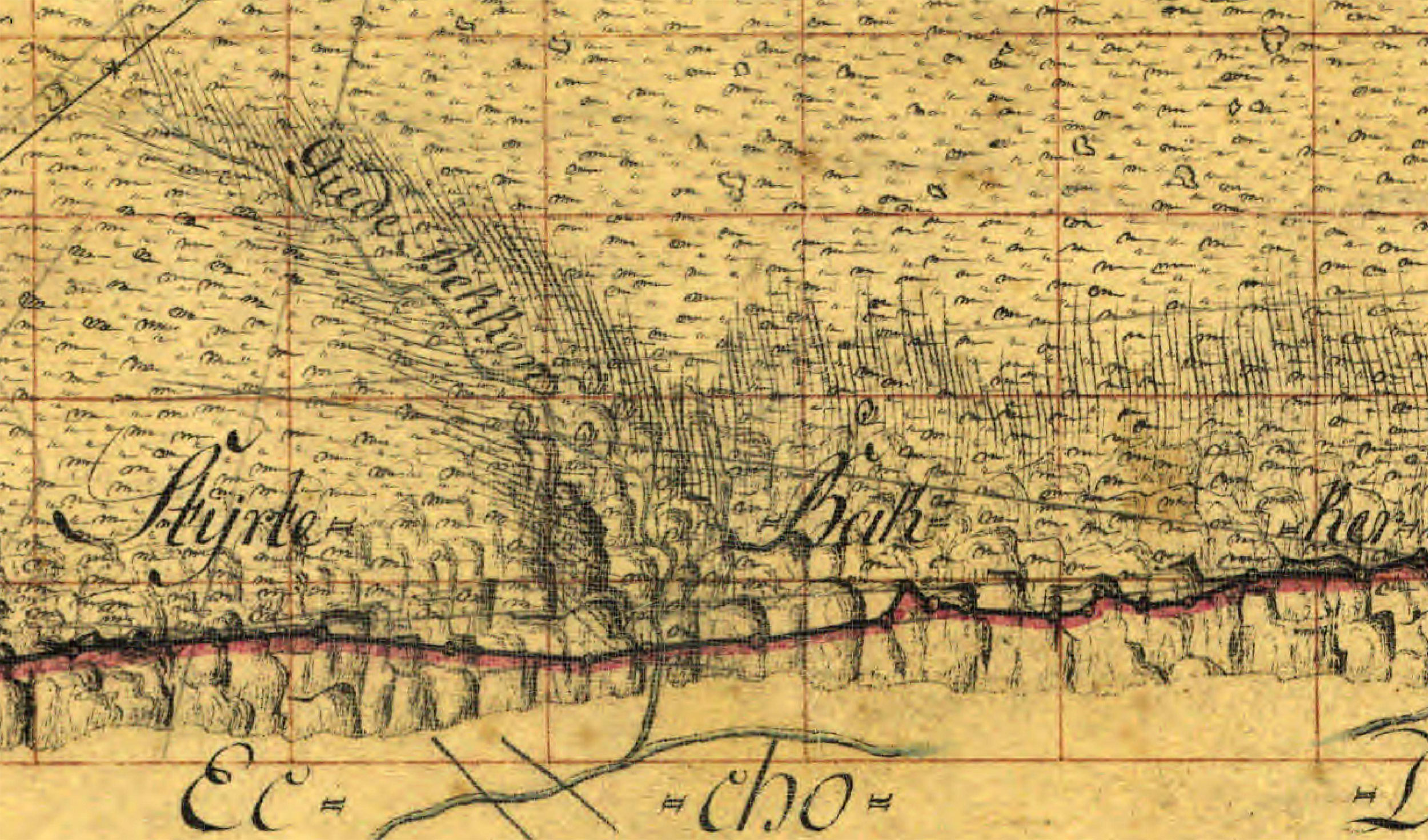 Styrtebakker på matrikel1-kort over Almindingen fra 1788