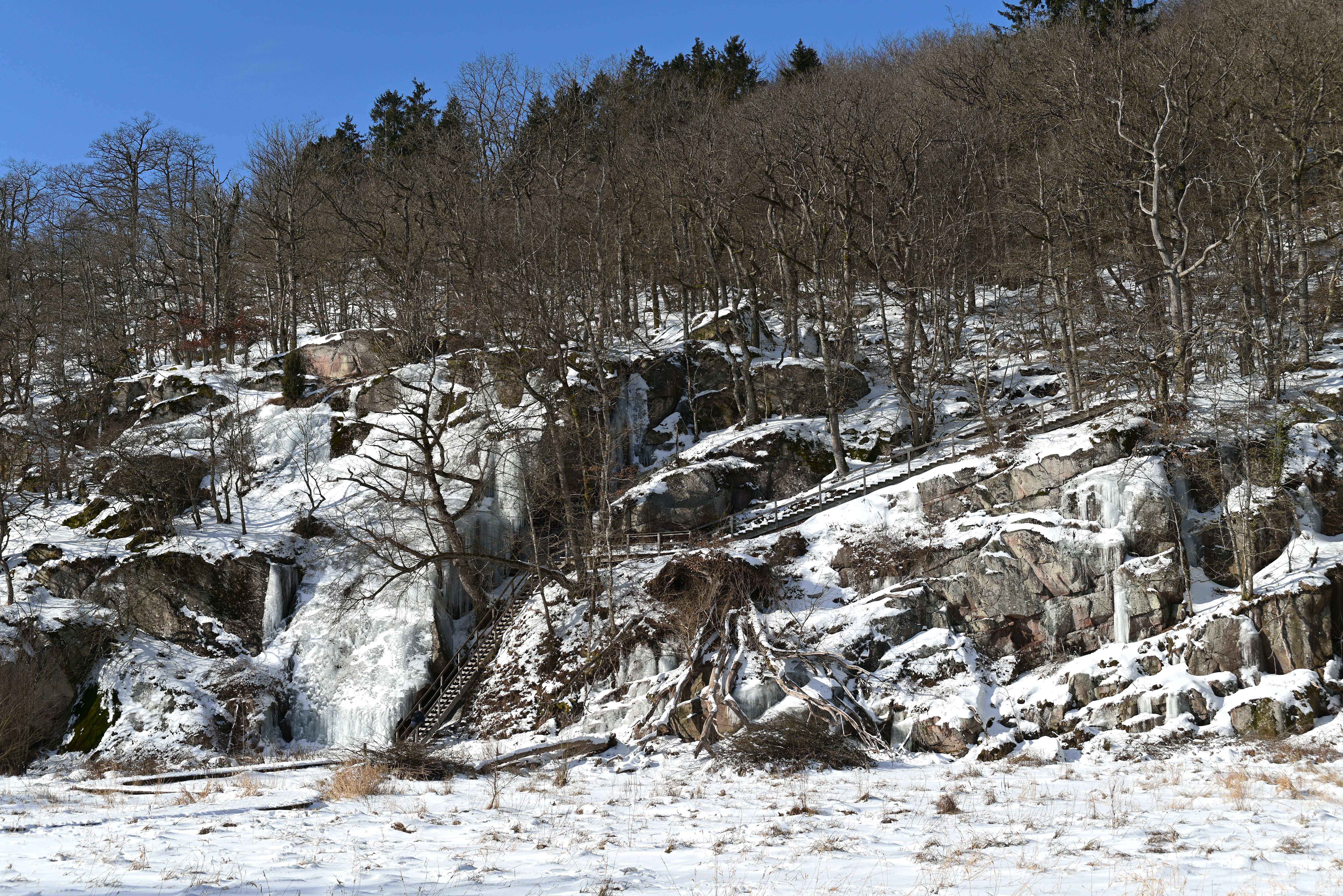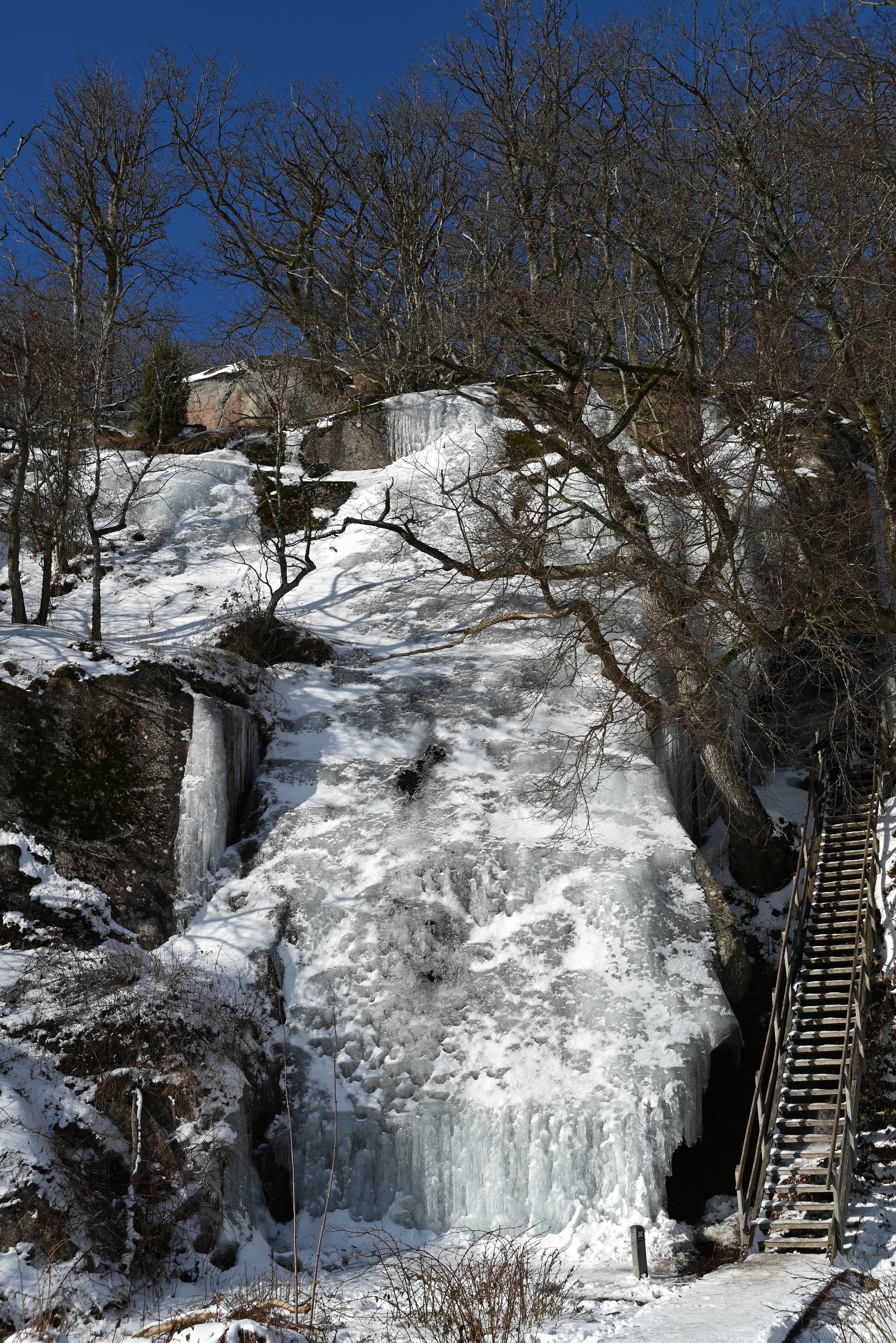 Under kraftig afsmeltning og regnskyl kan man her opleve et veritabelt vandfald, og målt i højde større end vandfaldet i Døndalen, hvorfor det må anses for at være Danmarks højeste vandfald, 22,5 meter fra top til tå i vandets frie fald!