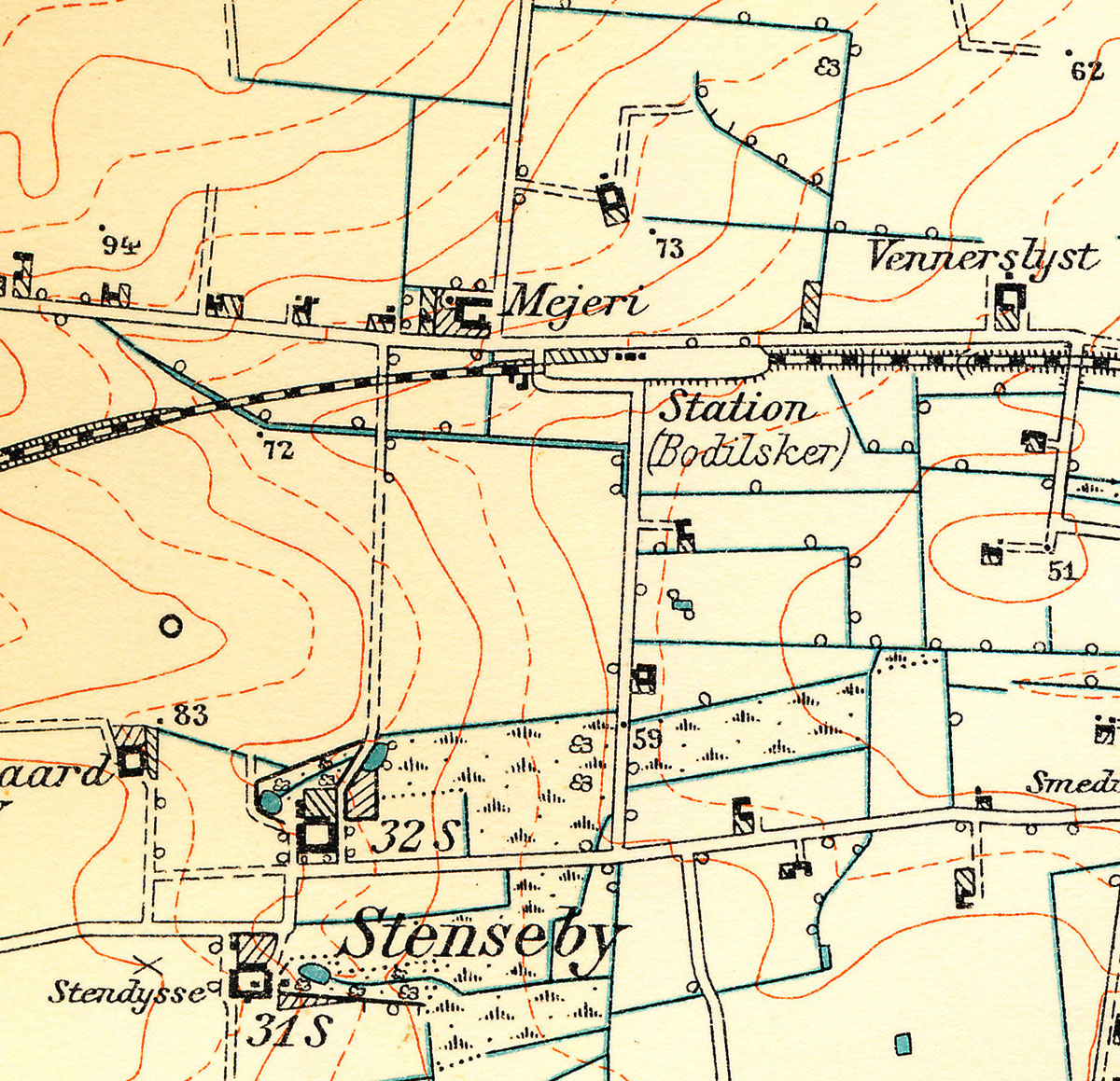 Da andelsbevægelsen rullede ind over øen i anden halvdel af 1800-tallet besluttede Bodilskers mælkeproducenter sig for i 1887 at etablere et mejeri i det flade landskab lige nord for Stenesebygårdene.