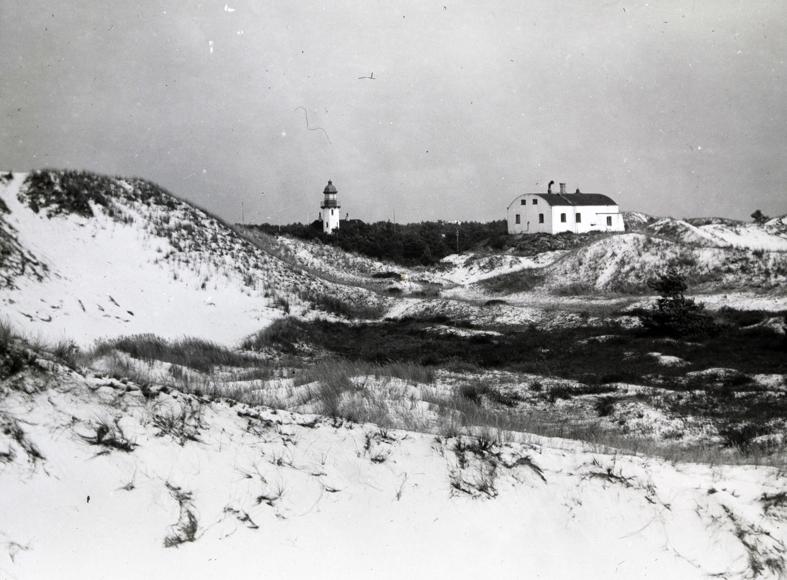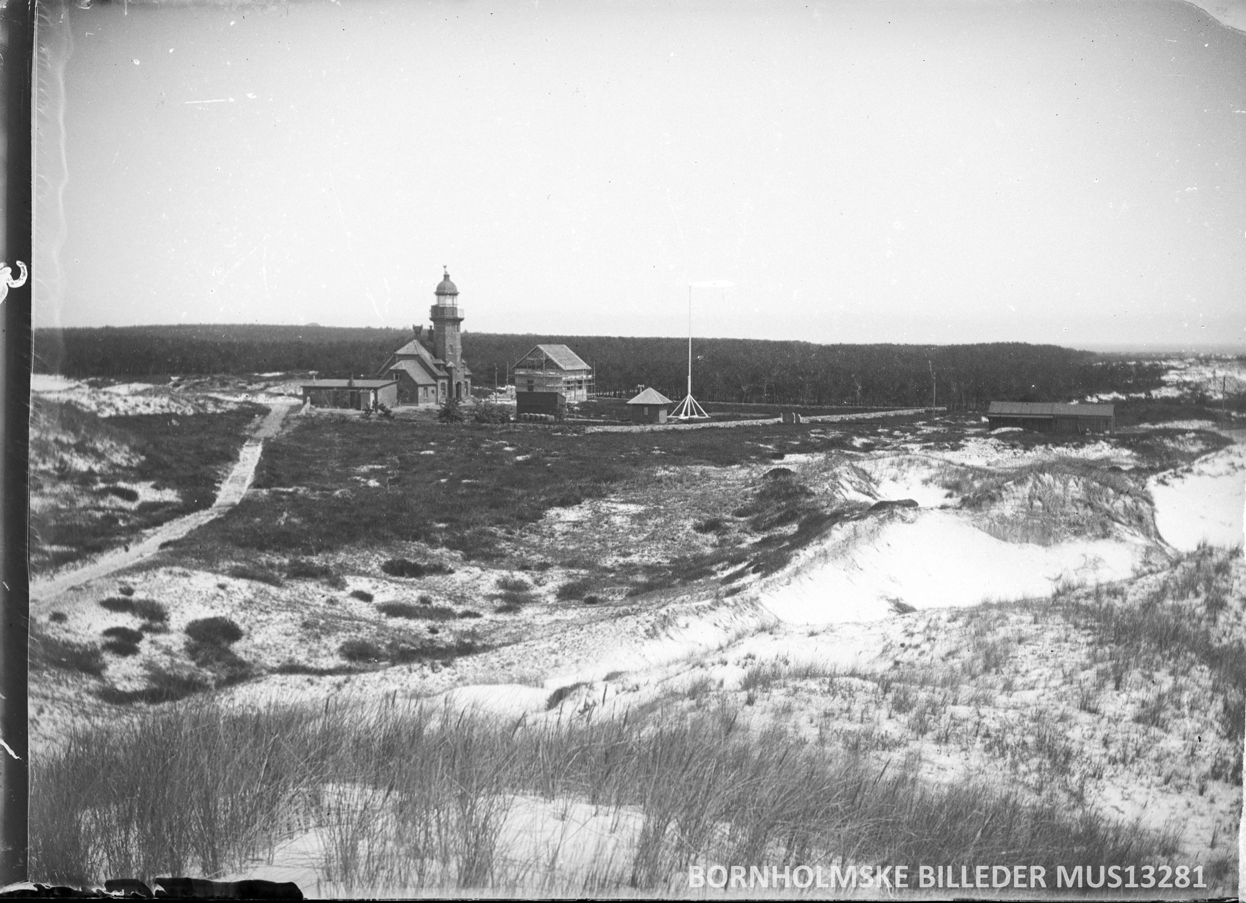 Redningsvæsenets redningsvej fortsætter fra Bifyret ned i klitterne omkring 1900. Billedet fotograferet af Fotograf Yhr og tilhører Bornholms Museum.