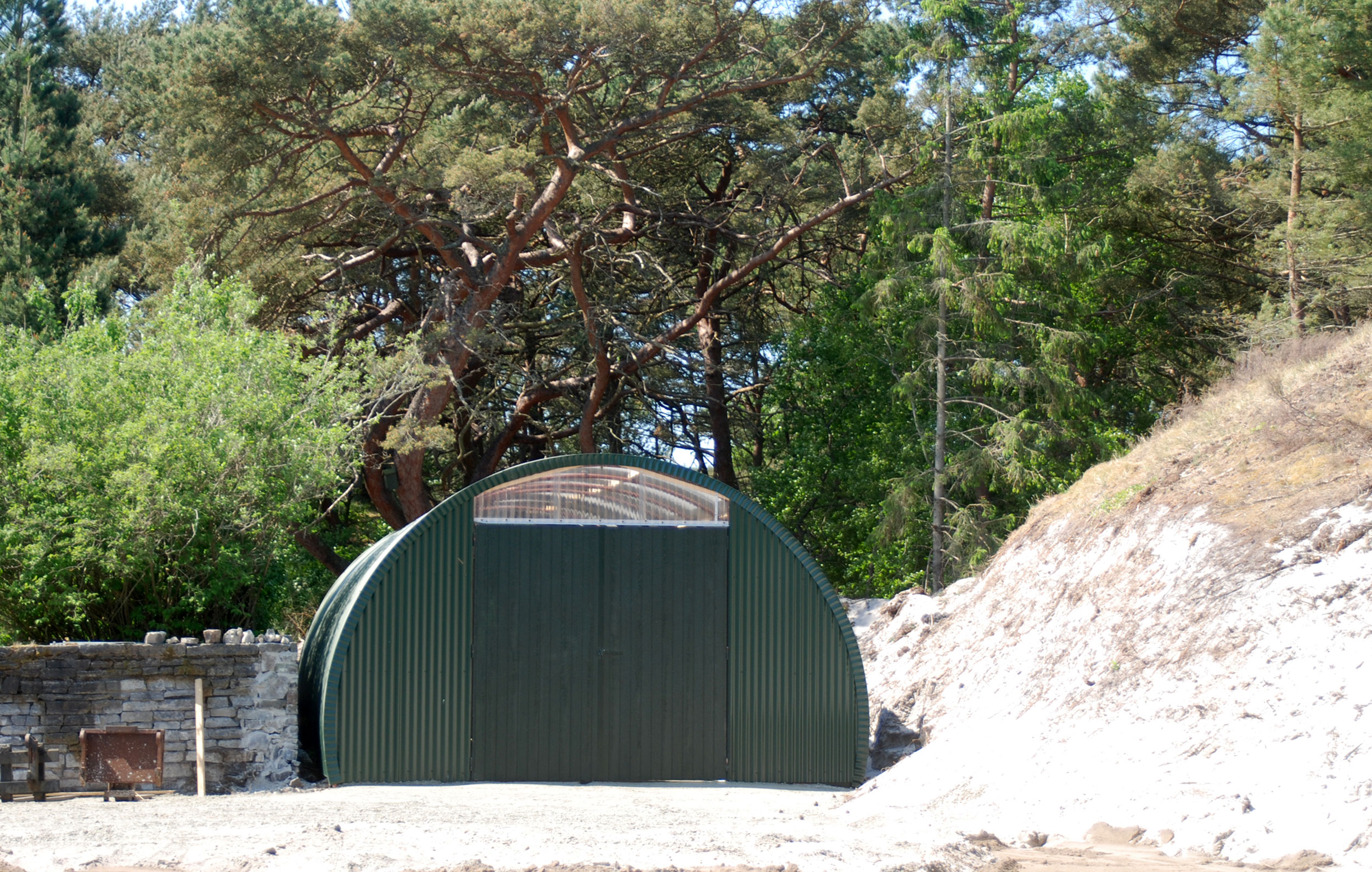 Redningsvæsenet havde etableret en vej til stranden sydvest for det nybyggede Dueodde Bifyr ude i klitterne.