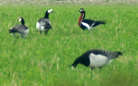 Især har en stor flok Bramgæs været stationær efteråret 2018, og som en ekstraordinær sjælden gæst har der i denne flok opholdt sig en Rødhalset Gås.
