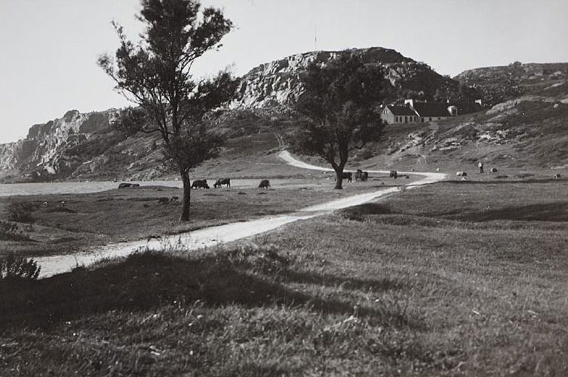 Da billedet blev malet havde man netop påbegyndt granitbrydningen på stedet, og landskabet er derfor i dag meget forandret.