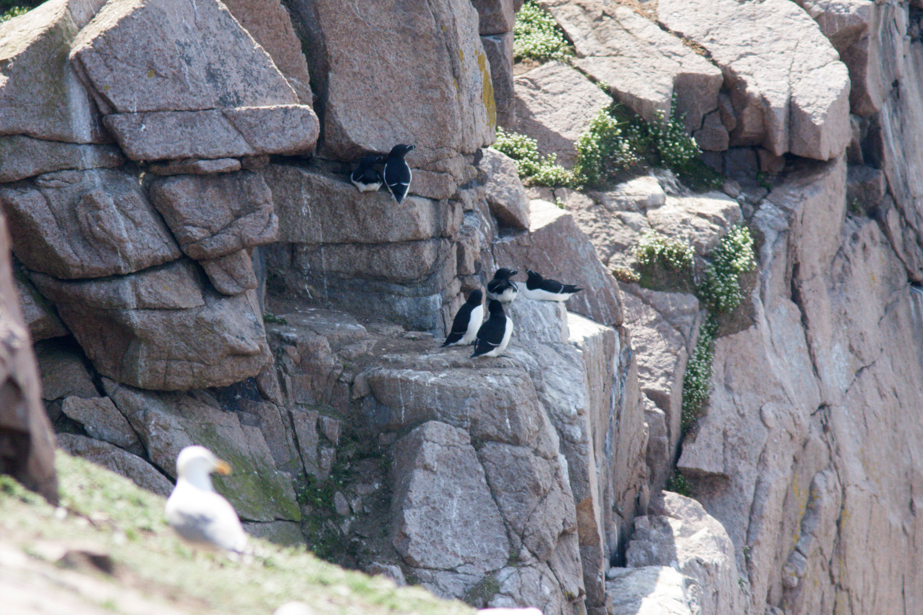 Til gengæld er antallet af Lomvie og Alk vokset betragteligt de seneste 25 år. Både her ud for Kongestolen, ved Mulekleven samt ved Jons Kapel optræder begge arter i store flokke på havet i deres parringsspil.