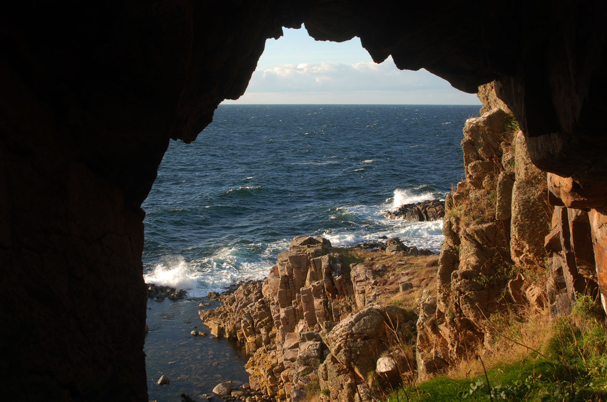 Kælderhalsen er en af naturens luner. Et hul i klipperne, et hul som en "gammeldags" kældernedgang, der kunne have været opstået dengang den baltiske issøs vandoverflade lå 20 meter højere end nutidens hav.