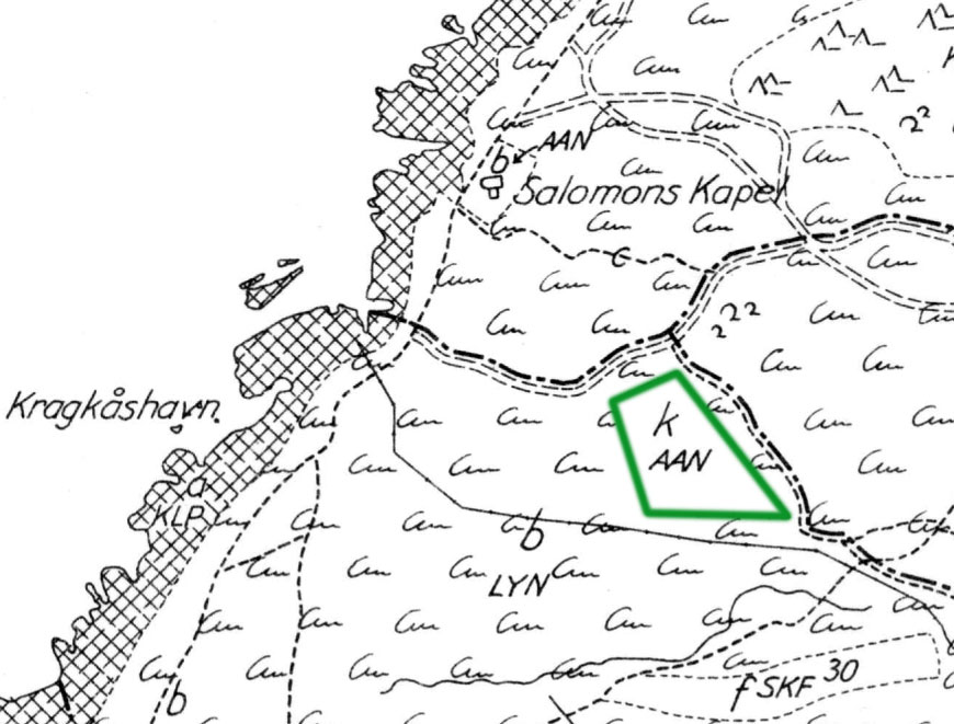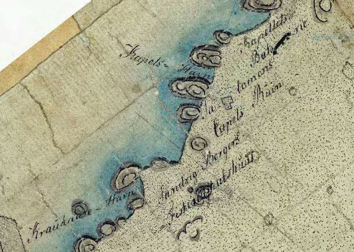 Omkring 250 meter Øst for Salomons Kapel bemærker man et svagt terrassehak i landskabet, og nedenfor denne noterer man sig lave strandvolde med afrundede strandsten - såkaldte "hâvkalla".