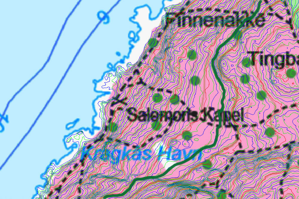 Baltiske Issø-strandlinie med hraftig grønt kurveforløb