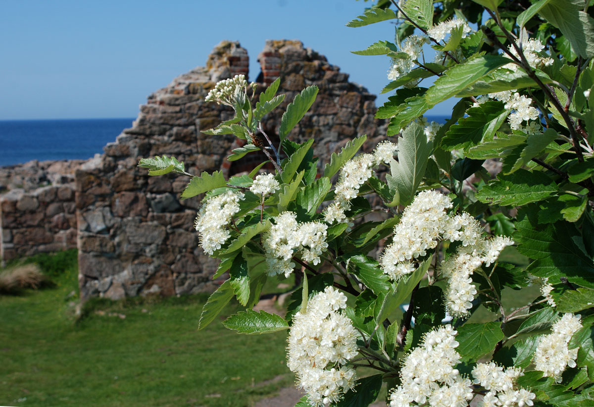 Og det skyldes introduktionen af Rynket Rose, Hybenrosen Rosa rugosa i landskabet omkring fyrvæsenets boliger på Hammerodde. Herfra har den bredt sig både langs kysten mod Sandvig og især mod vest.