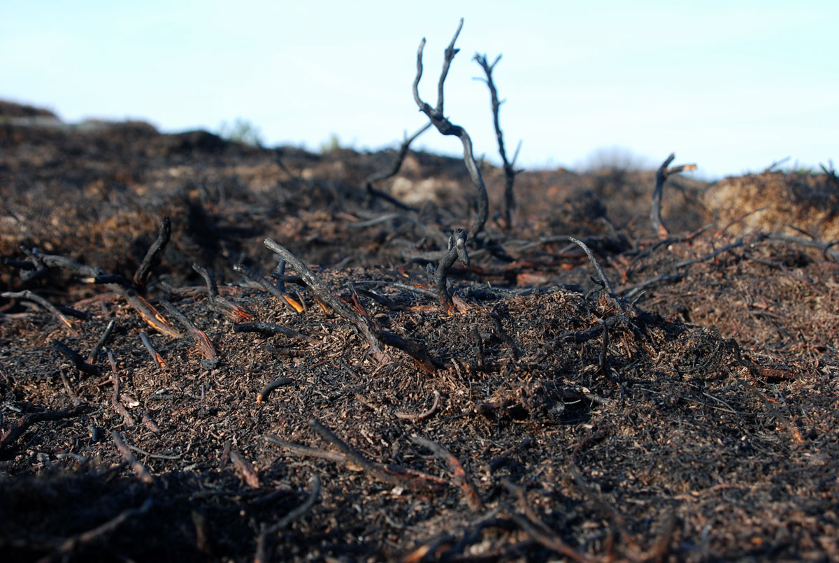 Ny Hedelyng vokser ind i et afbrændt lyngområde over Guldkilden