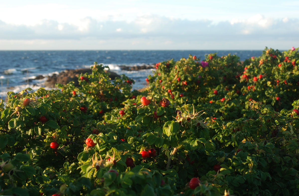 Rosa rugosa - hybenrosen i klipperne ved Salomons Kapel
