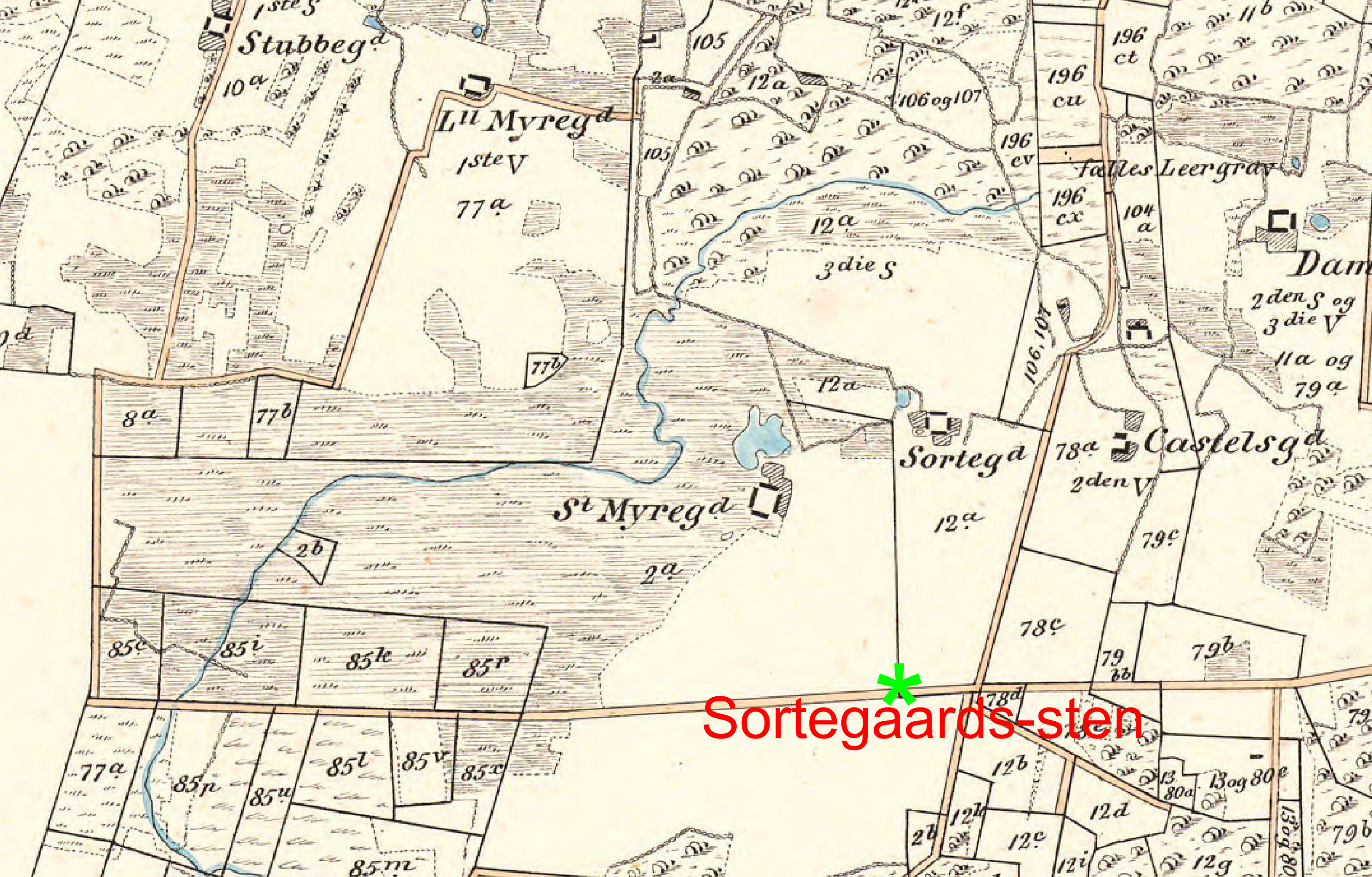"Sortegårdsgaden" blev omkring 1900-tallet ryddet af en Mads Johan Næstved og tillagt hans lynglod.