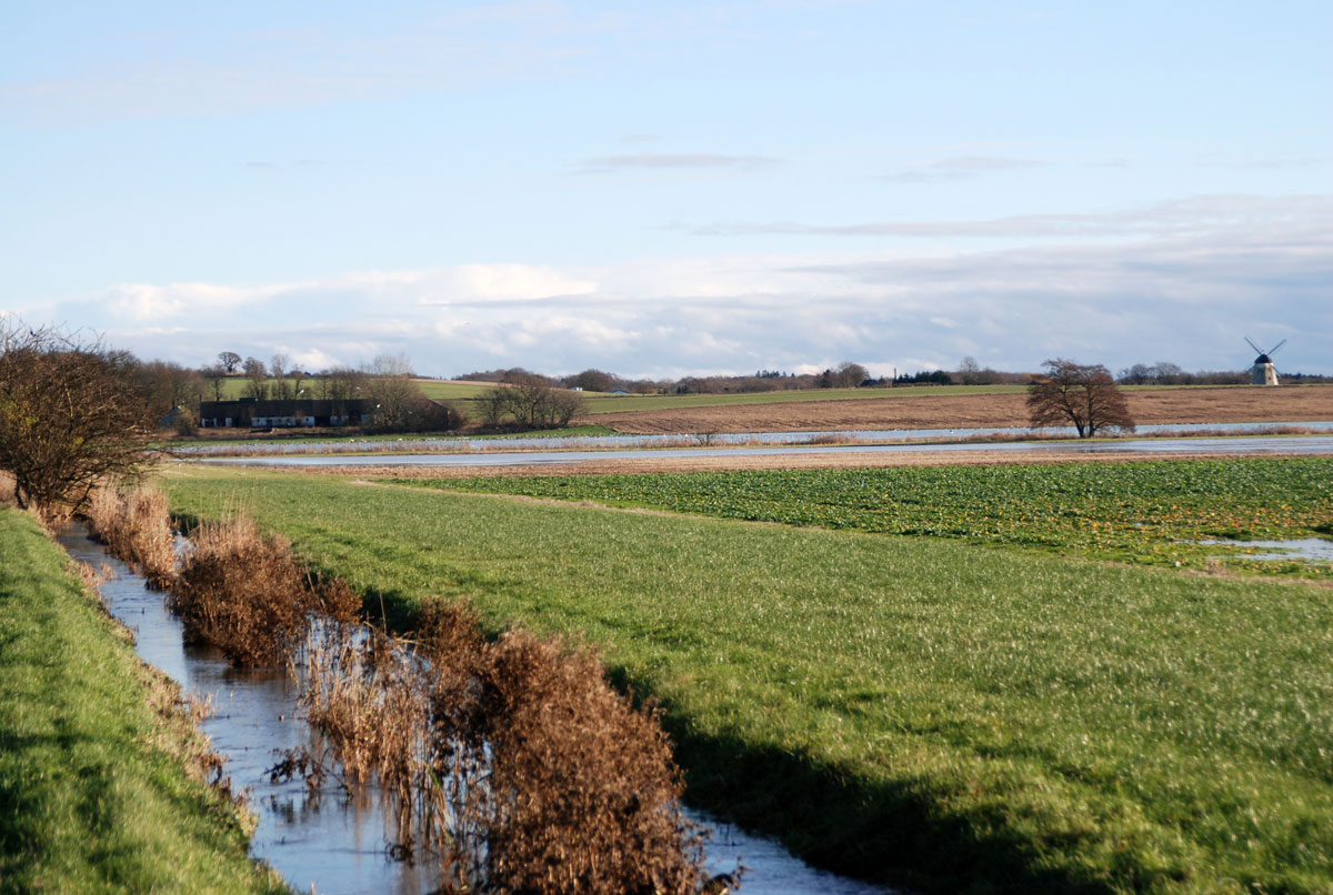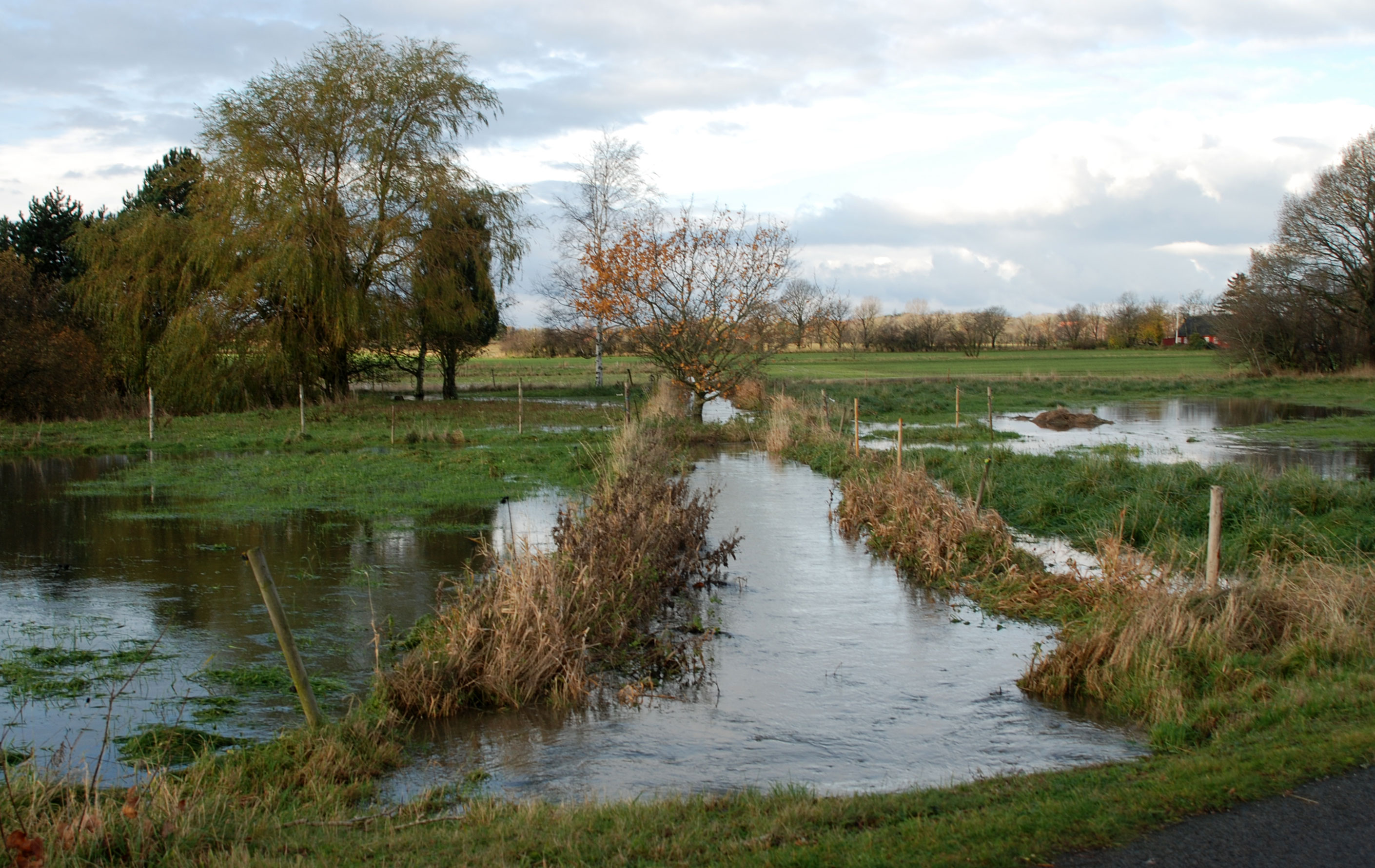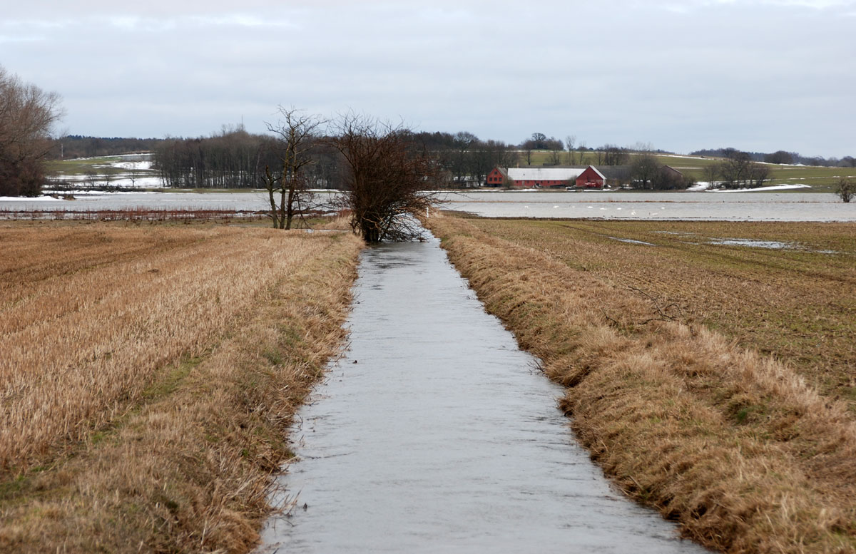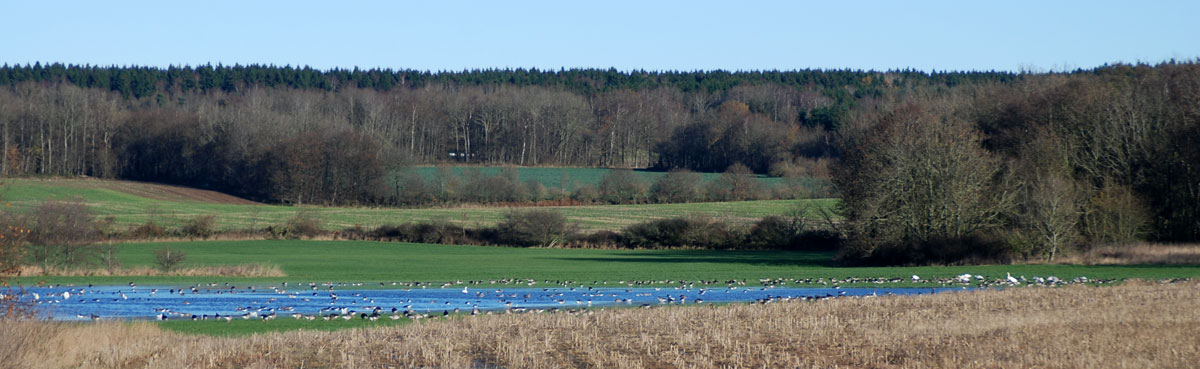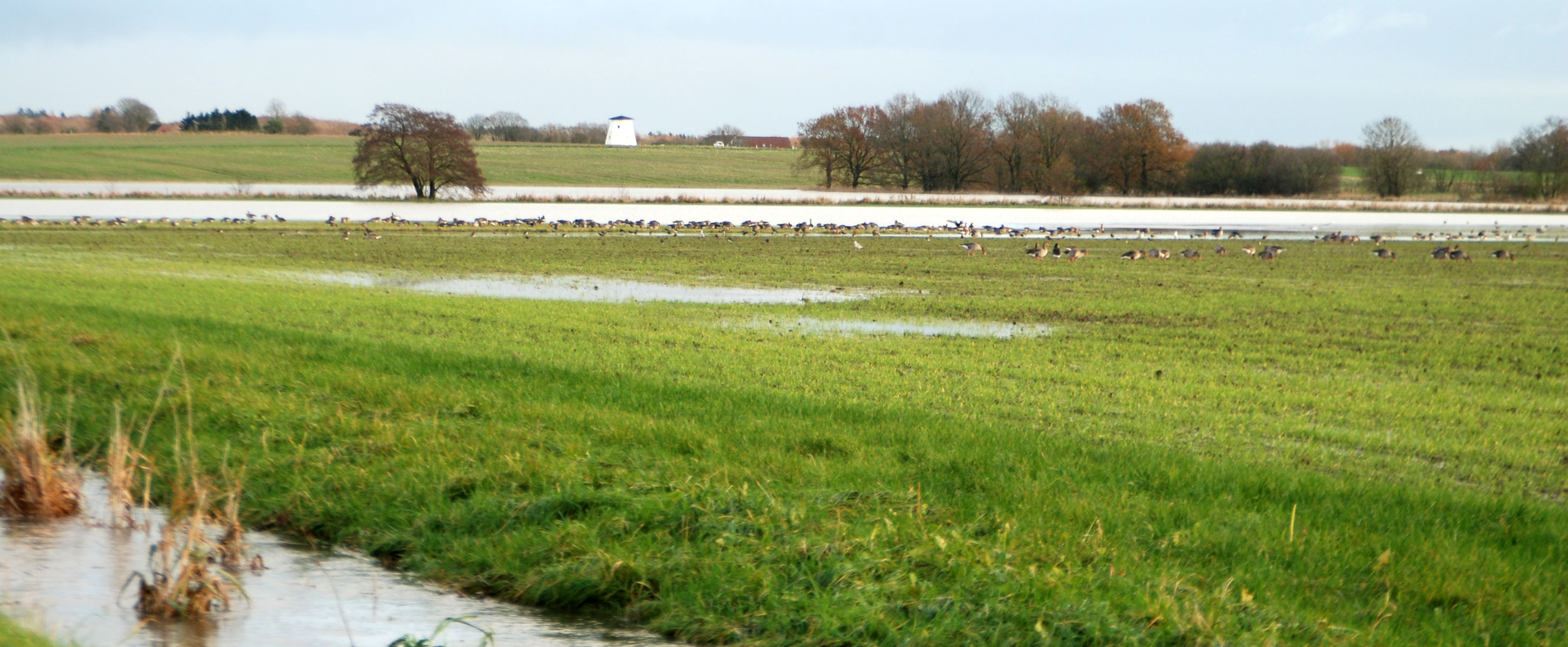 Grågæs, Blisgæs og Viber samles på oversvømmede marker ved Lille Myregårdsvej i november 2023