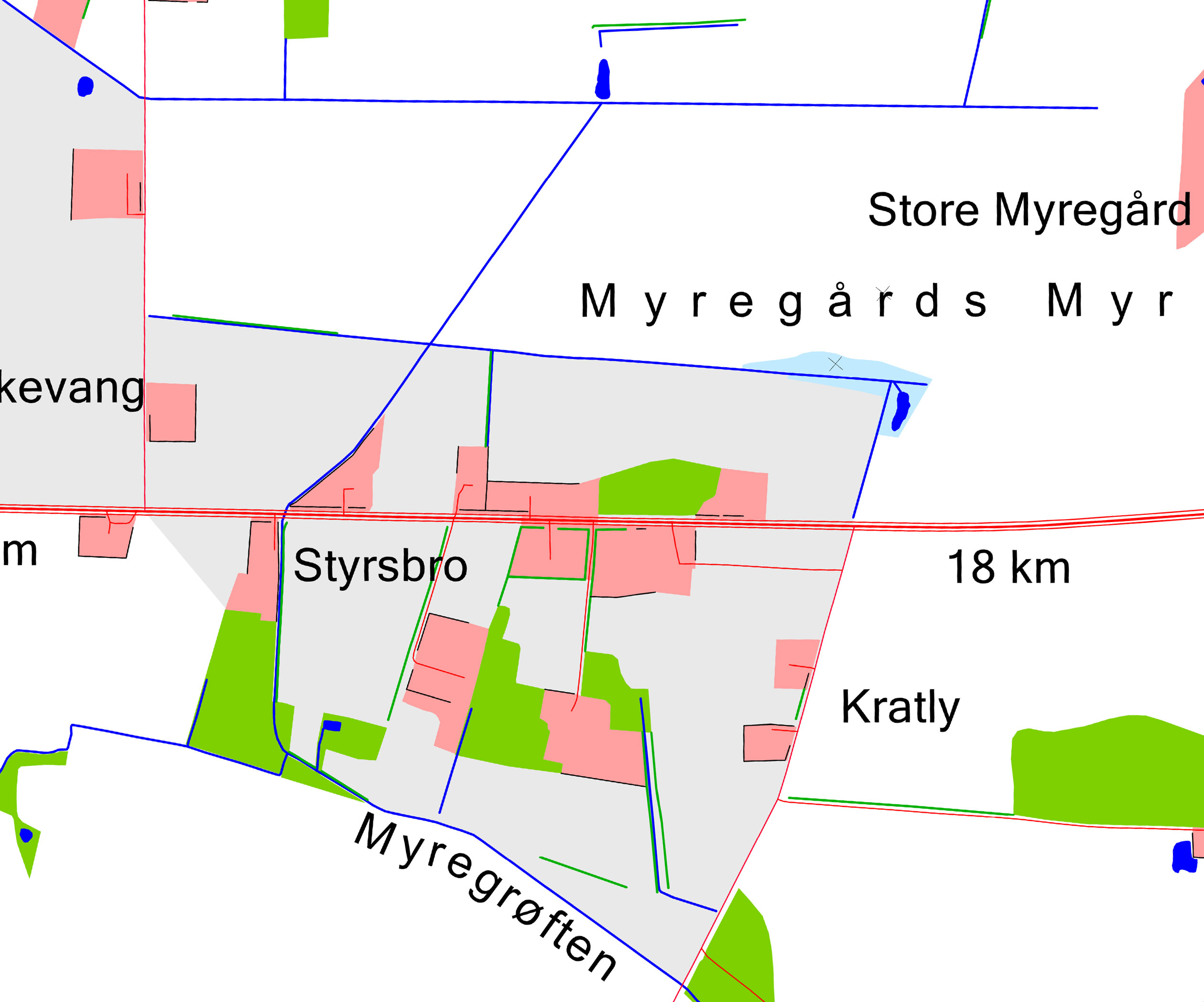 HøjlyngsvejenUdmarkshøj 1883 - en udmatrikulering af en lynglod fra den del af Højlyngen, der i 1866 tilfaldt Aaker sogn. Generalstabens Topografiske Kort 1883-1887.Udmarkshøjs stengærde 1883 på Generalstabens Topografiske Kort 1883-1887Den tidligere lyngflade opdyrket og i 2024 blev der høstet hø med efter følgende fremvækst af HøgeskægMyregårdsmyren i 1750'erne i sammenhæng med Pluseng og vandløb. Oplandet til Grødby ÅMyregårdsmyren 1883 på Generalstabens Topografiske kort. Myren ligger lavt for foden af bakkerne mod nord og øst med gårdene og Myremølle - Myreagre MølleGeologi under Myregårdsmyren - NexøsandstenMyregårdsmyren for foden af Lille Myregårdsvej med Myregrøften i november 2023Vandløbet, der fra Pluseng fører vandet ind i Myregårdsmyren og videre ud til Styrsbro, Myregrøften og Grødby åEn dag, vandet står højt efter tøbrudVand i grøften fra Pluseng fylder Myregårdsmyren op i november 2023Myregårdsmyren med store flokke Grågæs - set fra A38Tilledning af vand til Myregårdsmyren - Myregaards Myre fra Pluseng. Geodætisk kort fra 1930'erneVandet i Myregårdsmyren ledes til i grøft fra Pluseng i november 2023. Opstuvning ved broen under Lille MyregårdsvejMyregårdsmyren i november 2023 efter nogle dages regnvejrVandstanden i Myregårdsmyren - Myregårds Myr "styres" af underløbet i Styrsbro og herfra løber vandet gennem Myregrøften til Grødby Å.Original 1-matrikelkort fra 1820 med Styrsbro: Stedet, hvor landevejen fra Aakirkeby til Nexø passerer vandløbet fra Myregårdsmyren.Sortegaards-stenen ved Hovedvej A38 i skellet mellem 3. Sgd. Sortegaard og Proprietærgården Store Myregaard. Stenen er sat i forbindelse med udskiftningen af jorderne i Aaker Sogn i 1816