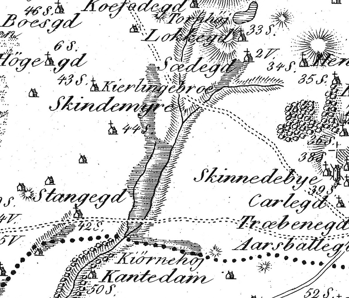 Området er tidligt drænet og afvandet og engarealerne dyrket op til "fed" leret produktionsjord for Skindermyregård allerede sidst i 1800-tallet.