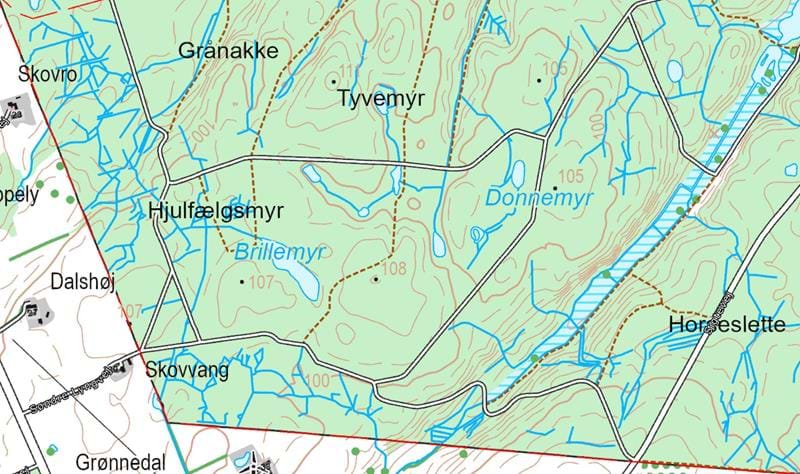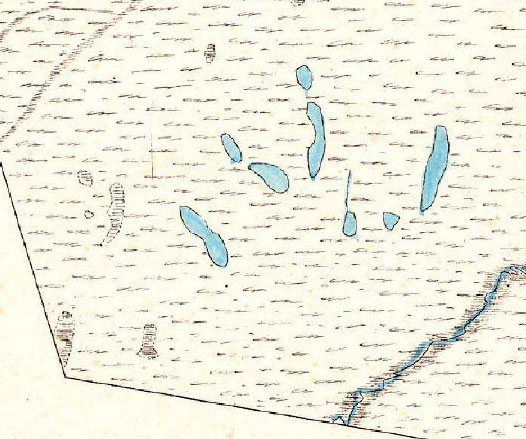 Kigger man på et kort fra før tilplantningen, var området rigere på vandsamlinger i lyngen - efter det svenske ord for mose, for det meste kaldet "-myr": Horsemyr, Hjulfælgsmyr, Tyvemyr, Brillemyr og Donnemyr. Læs mere om Horsemyr ved at trykke her.