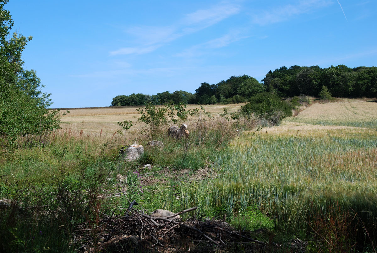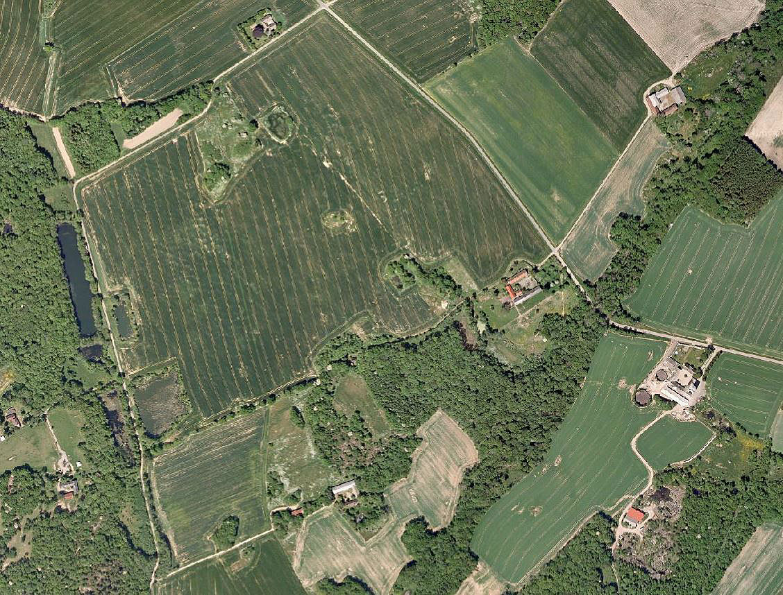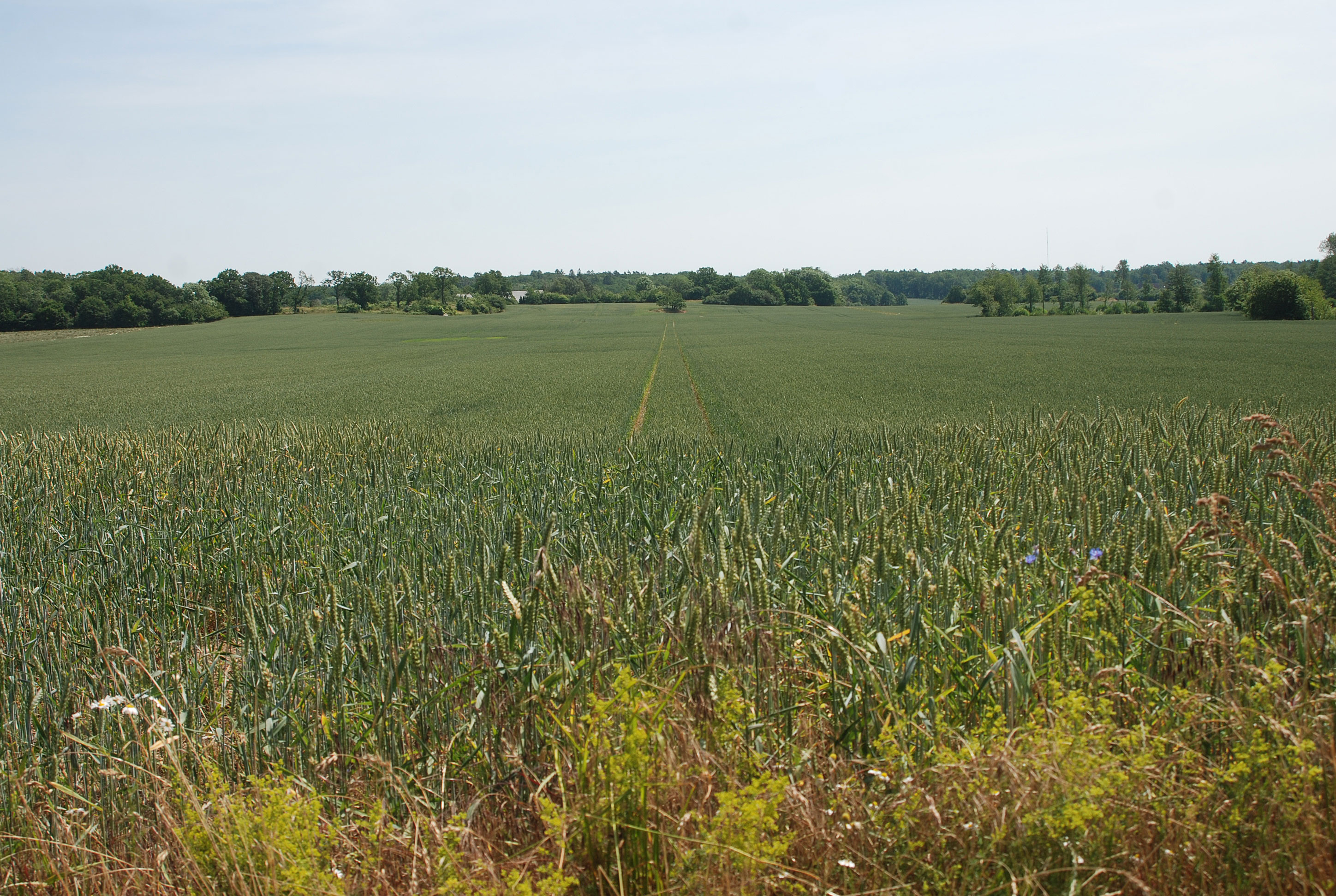 Skellet og postruten mellem Brøddegård og Lykkegård fortsat markeret som en ledelinie i landskabet sommeren 2006