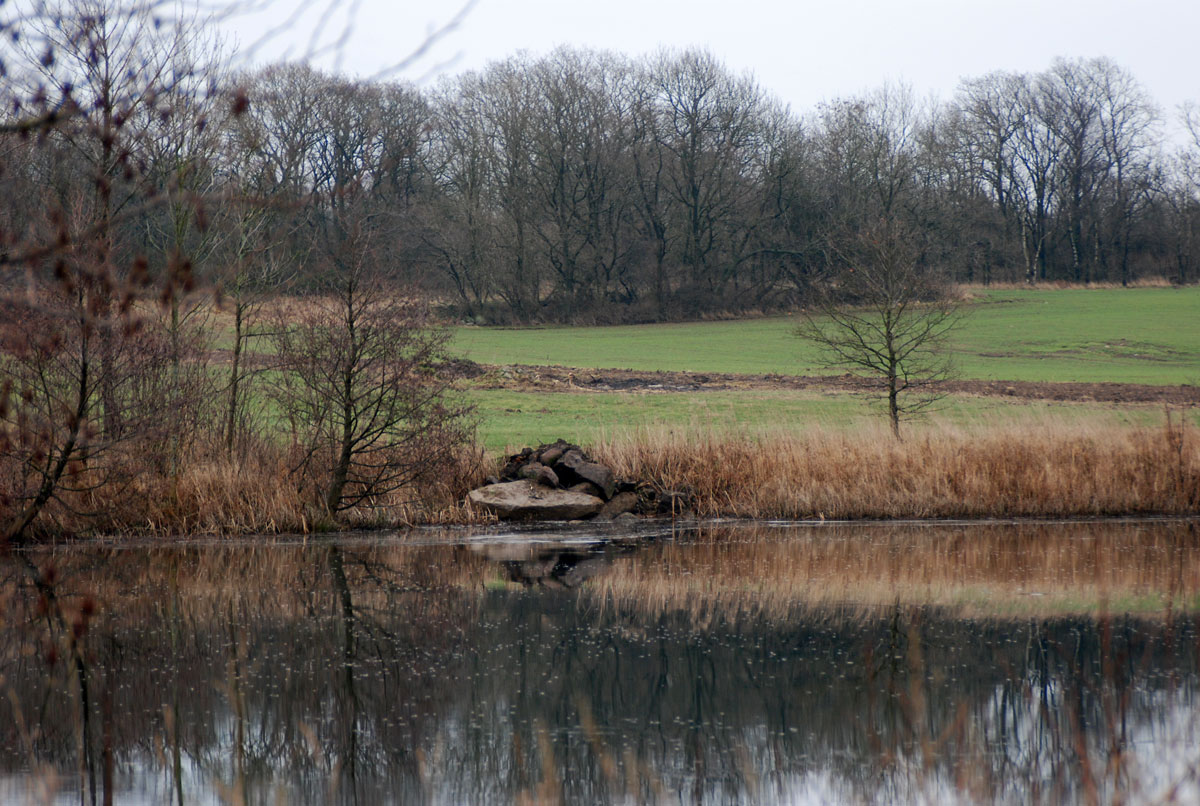 Har man forladt Olsker-Rø-landevejen og kørt ind mod Rutsker Plantage opdager man et landskab, der nærmest er fladt som en pandekage og rigt forsynet med firkantede vandområder.