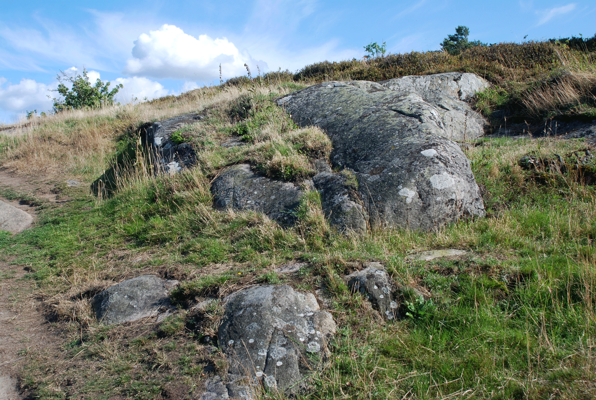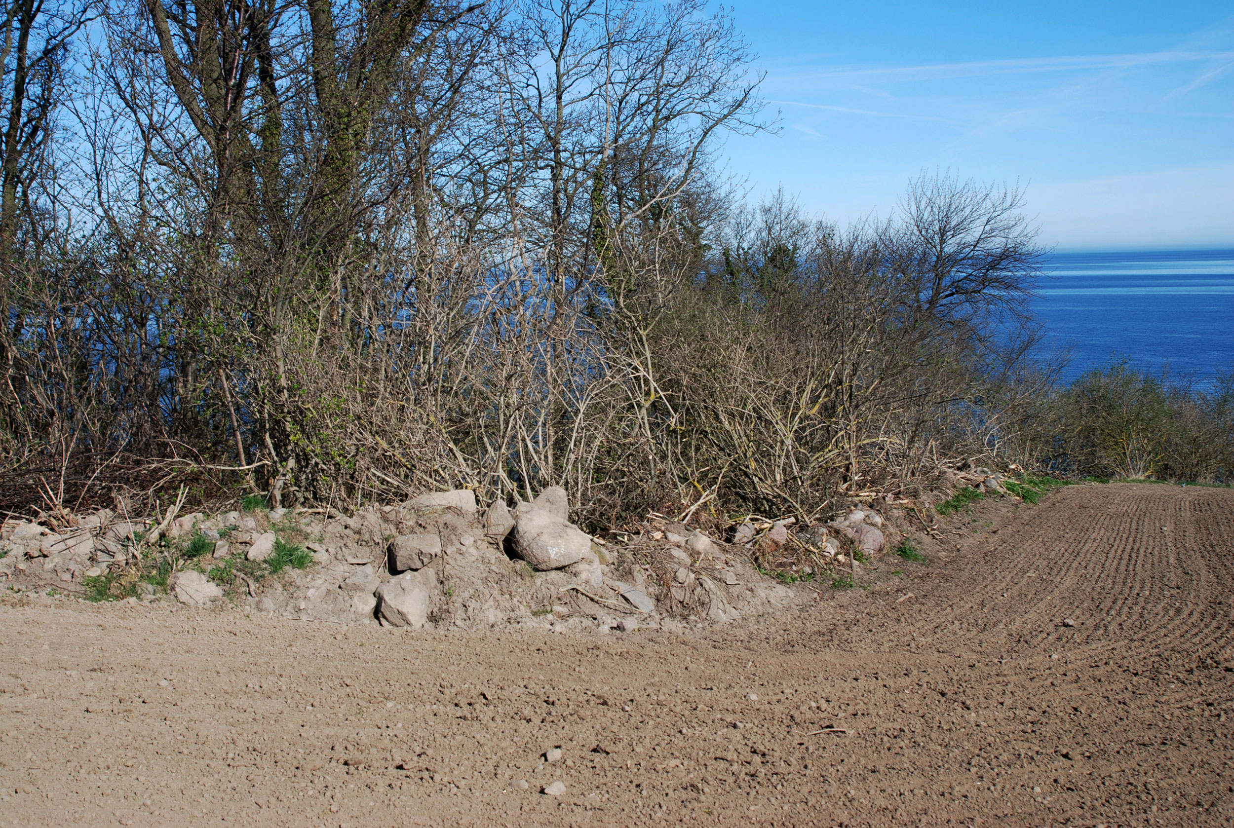 Skændet stengærde umiddelbart syd for Hestestenene - langs hvilket oplevelsesstien var planlagt