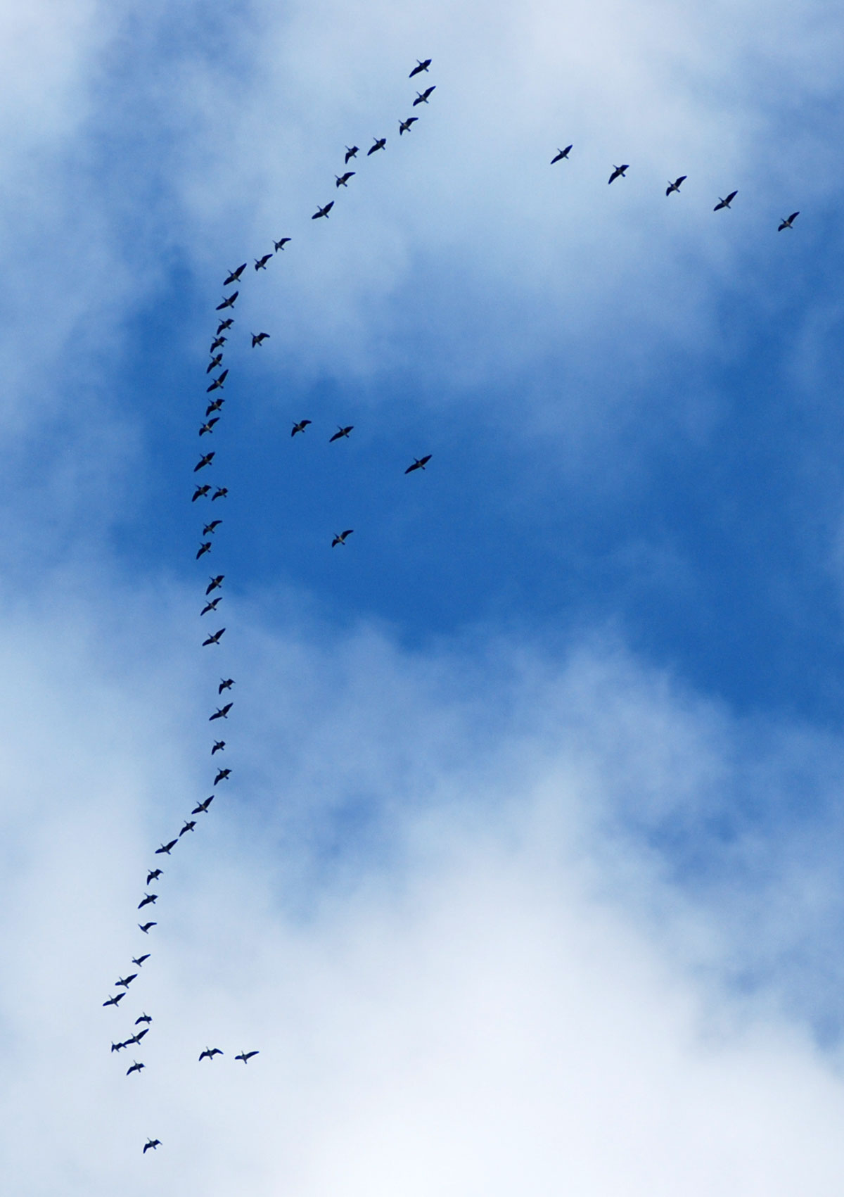 Ved et specielt vejrlig letter store flokke af traner fra Ølands Alvar tidligt om morgenen. og hvis vinden har den rigtige retning og styrke, kommer de nogle timere senere forbi Bokul på deres færd mod Rügen.